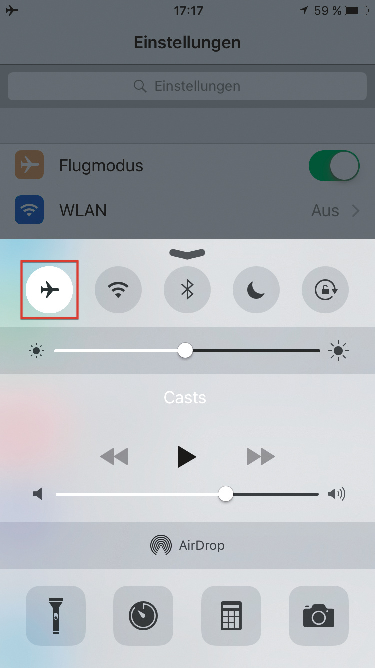 Den Flugzeugmodus sollte man vor jeder Aufnahme aktivieren. WLAN und Bluetooth sind eher unkritisch, der Mobilfunkempfang kann aber empfindlich stören.