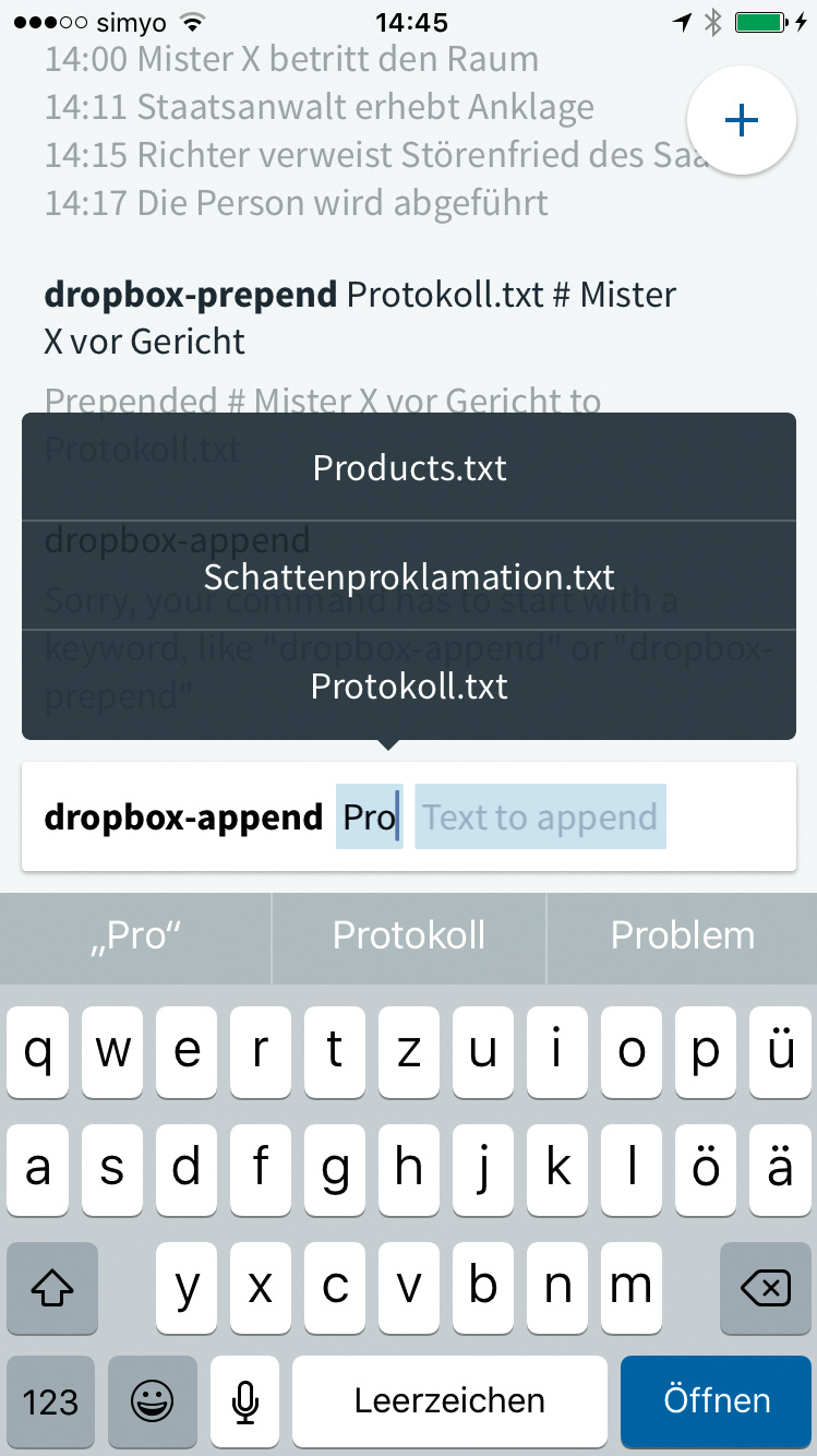Im Unterschied zu OS X kennt iOS ohne Jailbreak kein Unix-Terminal, um das Gerät per Tastatureingaben bedienen zu können. Der Macher von Input glaubt, dass auch auf Touchscreen-basierten iOS-Geräten ein Ausflug in die Welt der Textkommandos lohnt. Mit der App greift man aus einer einzigen Anwendung auf aktuell 16 verschiedene Cloud-Dienste zu – sofern man der App die entsprechenden Rechte erteilt hat. Zu jedem verbundenen Dienst stehen einige Befehle bereit. Dabei ist Input leicht zu bedienen: Es blendet stets die verfügbaren Aktionen ein, sodass man diese direkt auswählen kann, statt sie einzutippen.