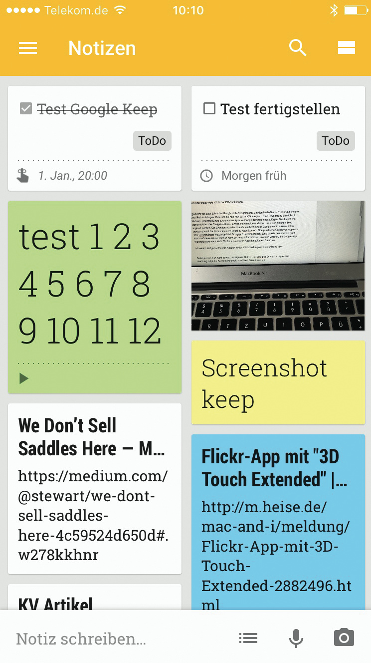 Mit gut zweijähriger Verspätung hat Googles Notiz-Dienst „Keep“ den Weg auf iPhone und iPad gefunden. Die iOS-Anpassung ist gelungen: Eine Erweiterung ermöglicht Nutzern, über das Freigabe-Menü Inhalte aus anderen Apps zu übernehmen. Dazu wird jeweils eine neue Notiz angelegt. Anders als bei Apples App lassen sich also bestehende nicht um Informationen erweitern.