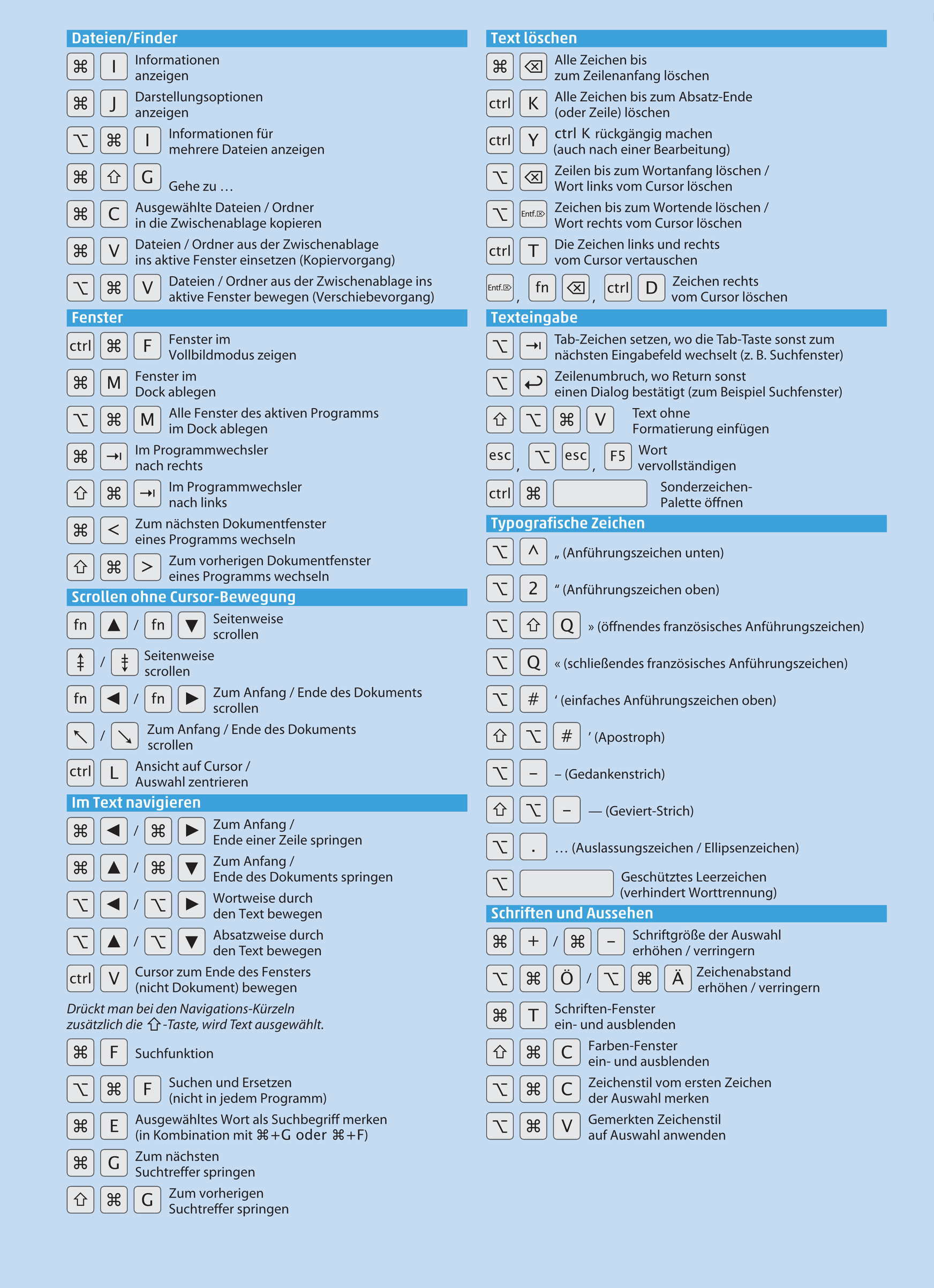 Tastaturkürzel-Übersicht für macOS 10.12
