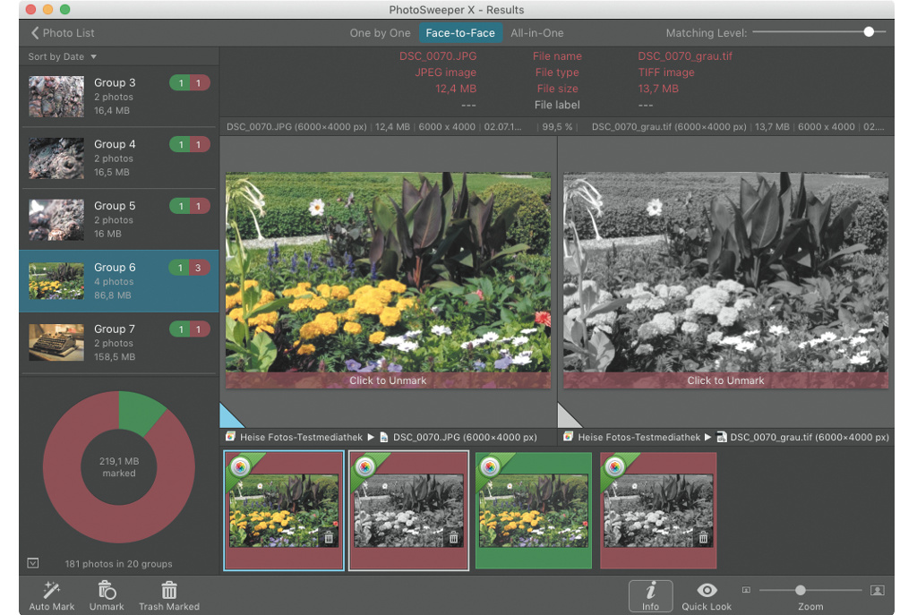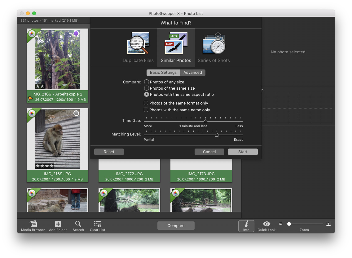 PhotoSweeper entdeckt sowohl exakte Duplikate als auch optisch ähnliche Bilder oder Fotoserien. Es unterstützt Mediatheken von Fotos, iPhoto, Aperture, Lightroom und Capture One.