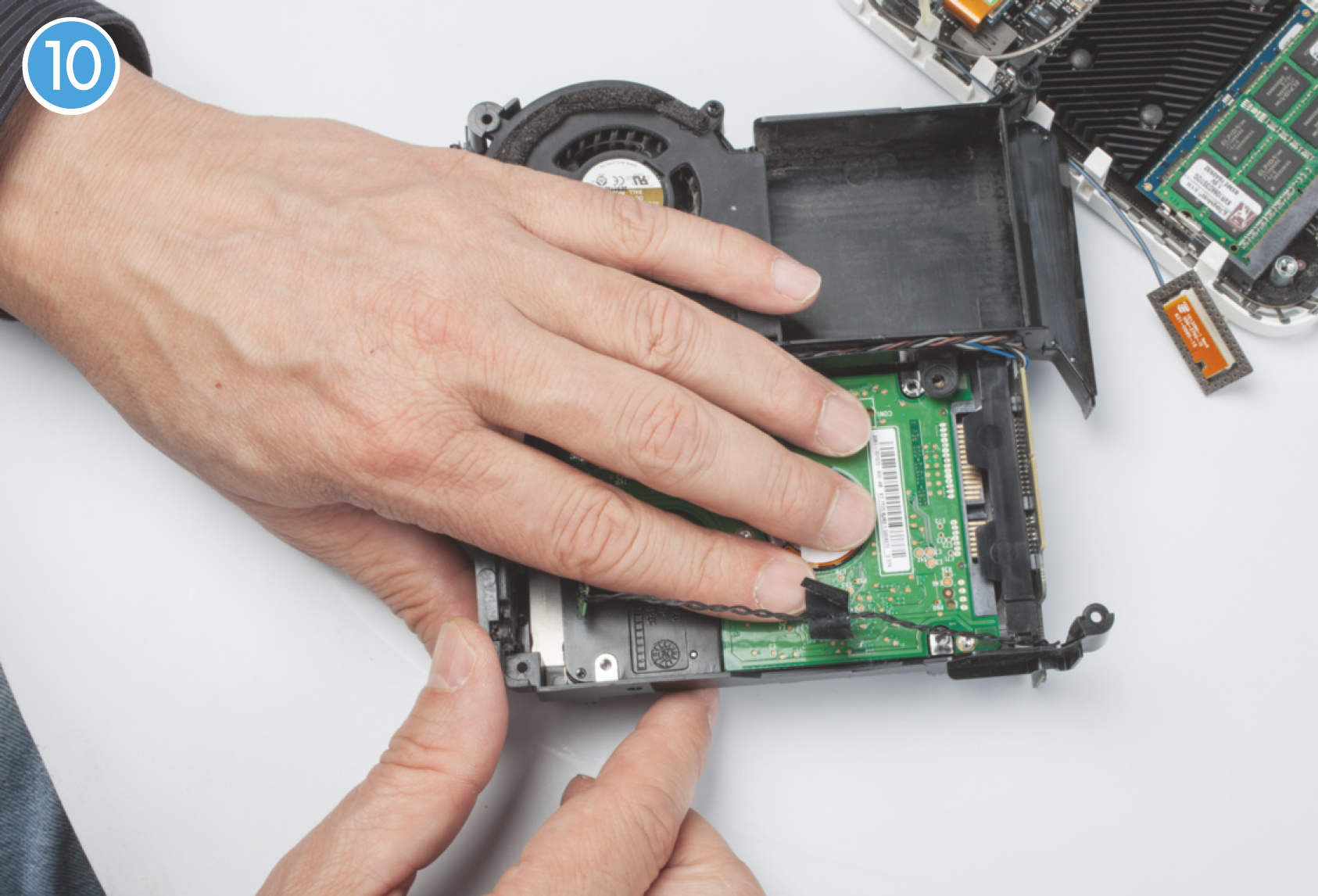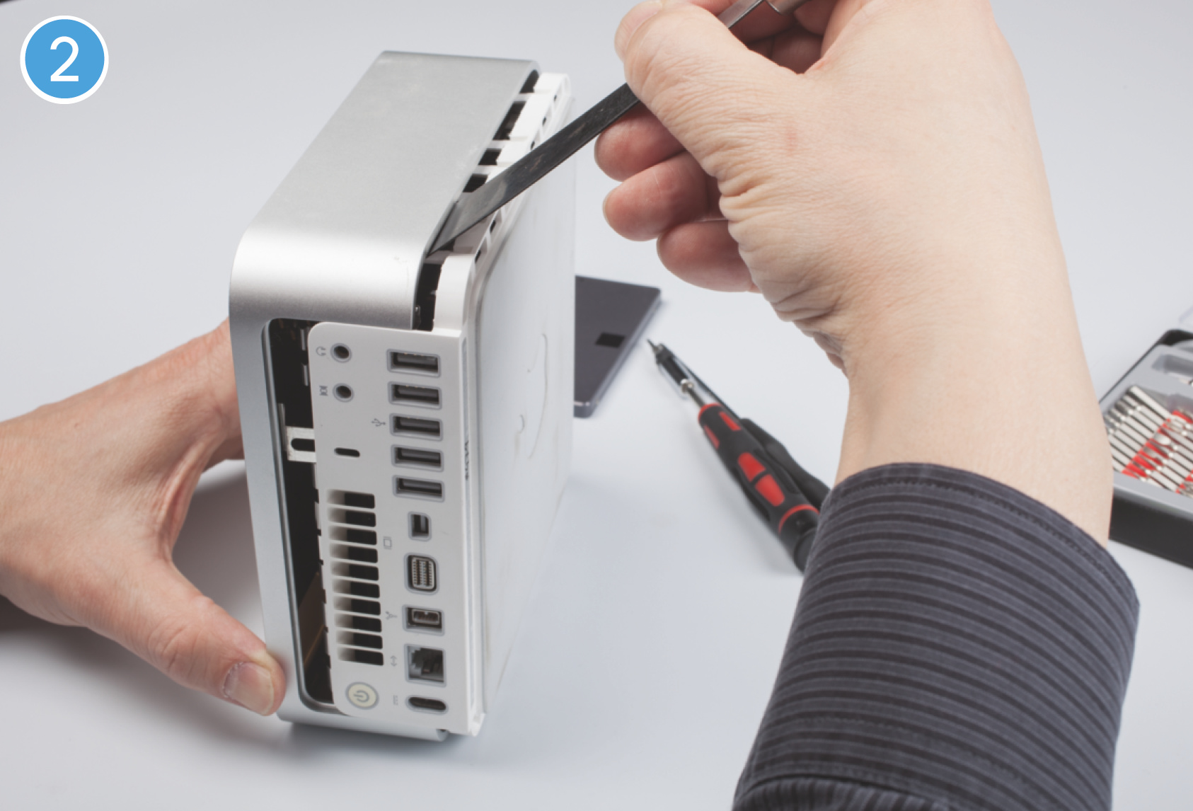 Die weißen Mac minis aus dem Jahre 2009 laufen noch mit dem heute aktuellen Betriebssystem El Capitan. Mit ihrer SATA-II-Schnittstelle profitieren sie auch ganz erheblich von einer SSD. Um das Gehäuse zu öffnen, braucht man einen scharfen Spachtel. Den können Sie mit etwas Schleifpapier auch selbst herstellen. Einige Modelle sind mit einem externen Temperaturfühler ausgestattet, den Sie einfach auf die SSD kleben. Für den Zusammenbau halten Sie die gleichen Schritte in umgekehrter Reichenfolge ein. Den ganzen Umbau haben wir auf Video festgehalten. Sie finden es via Webcode unten auf der nächsten Seite. (jes)