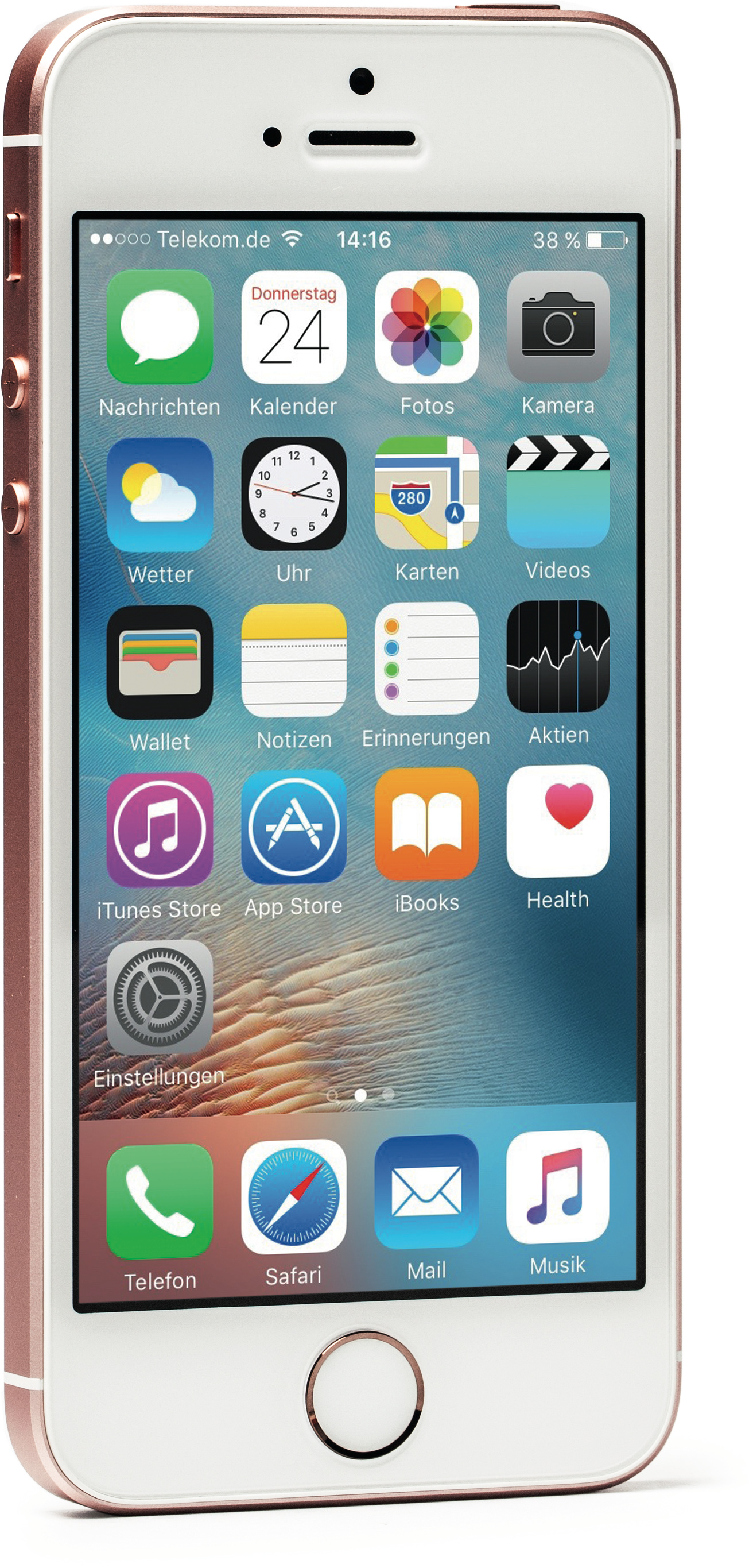 Tatsächlich unterscheidet sich das neue iPhone SE äußerlich kaum vom iPhone 5s, denn es steckt im gleichen Gehäuse. Es bleibt also beim bewährten, etwas dickeren Design mit den gerundeten Ecken und ausgeprägten Kanten – eine gute Nachricht für alle, die das rundliche Design des iPhone 6 als zu rutschig empfinden. Nur wenige Details verraten das neue Modell: Die abgeschrägten Gehäusekanten sind nicht mehr glänzend poliert, sondern matt wie der restliche Rahmen. Die schmalen Antennenstreifen sind nun besser kaschiert. Zudem bietet Apple das Gerät neben den bisherigen Farben Space Grau, Silber und Gold zusätzlich in Roségold an.