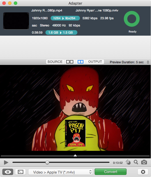 Die Bedienoberfläche besteht im Wesentlichen aus einer Warteschlange, in der man Dateien ablegt, die in ein neues Format gebracht werden sollen. Per Drop-Down-Menü in der Fußleiste wählen Anwender das Zielformat aus einer Vorauswahl. Zur Auswahl stehen eine Vielzahl gängiger Formate. So ist die Software in der Lage, optimierte Videodateien sowohl für diverse Apple-Geräte als auch für Sony- und Microsoft-Konsolen zu erstellen. Auch auf die Ausgabe animierter GIFs und Flash-Videos versteht sich die Anwendung.