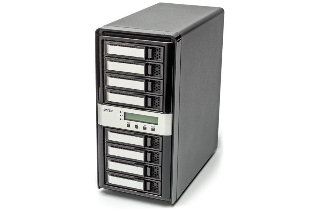 Das Thunderbolt-3-RAID von Areca nimmt acht Festplatten oder SSDs auf, die man flexibel konfigurieren kann.