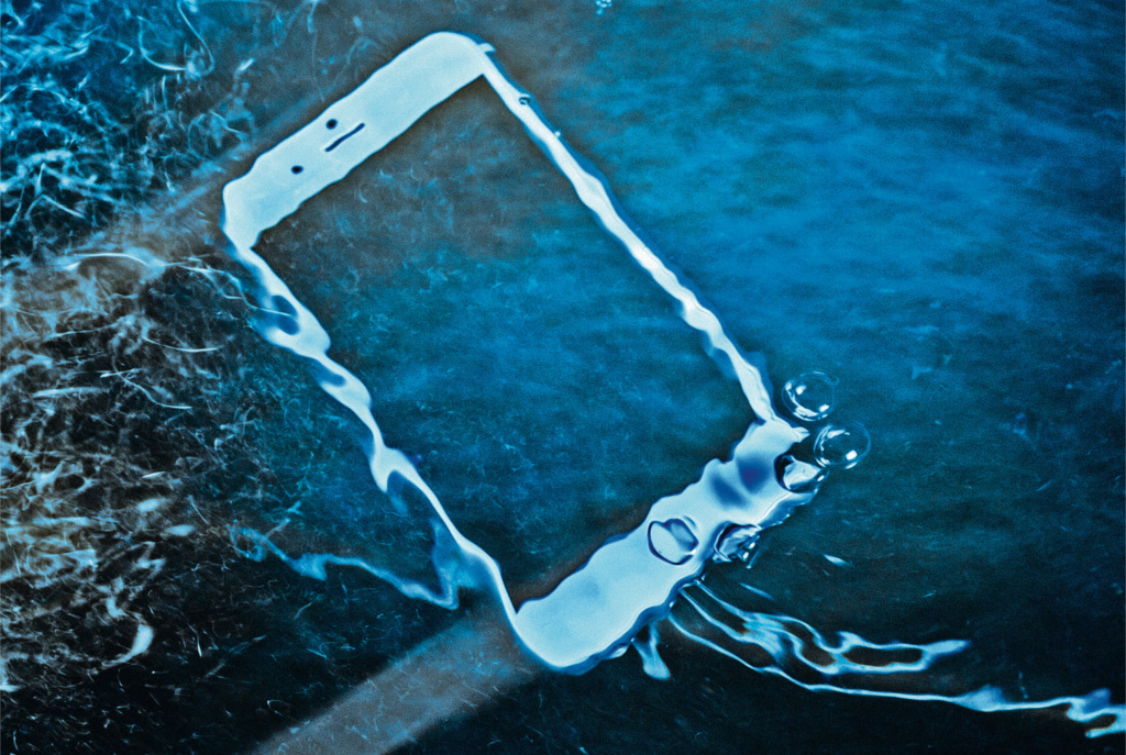 Einen Moment lang nicht aufgepasst und schon passiert es: Das iPhone rutscht aus der Hand und fällt ins Spülbecken. Fast immer gelangen dabei ein paar Tropfen Wasser ins Innere. Die Flüssigkeit sickert zwischen die Kontakte und löst einen Kurzschluss aus. Plötzlich flackert der Bildschirm. Er zeigt Streifen, einige Startversuche später bleibt er schwarz.