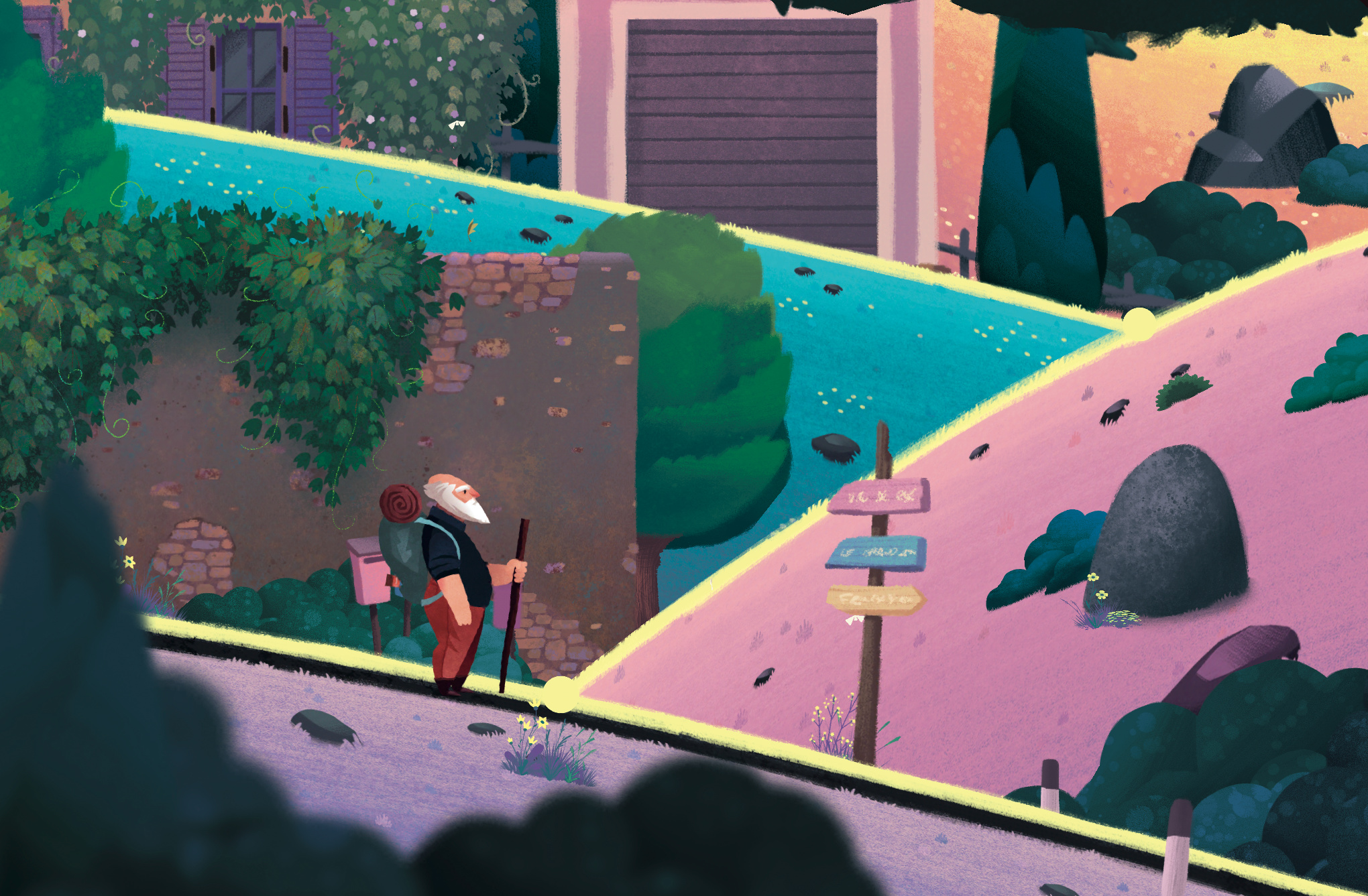 In Old Man’s Journey ebnet der Spieler dem rüstigen Protagonisten die Wanderroute.