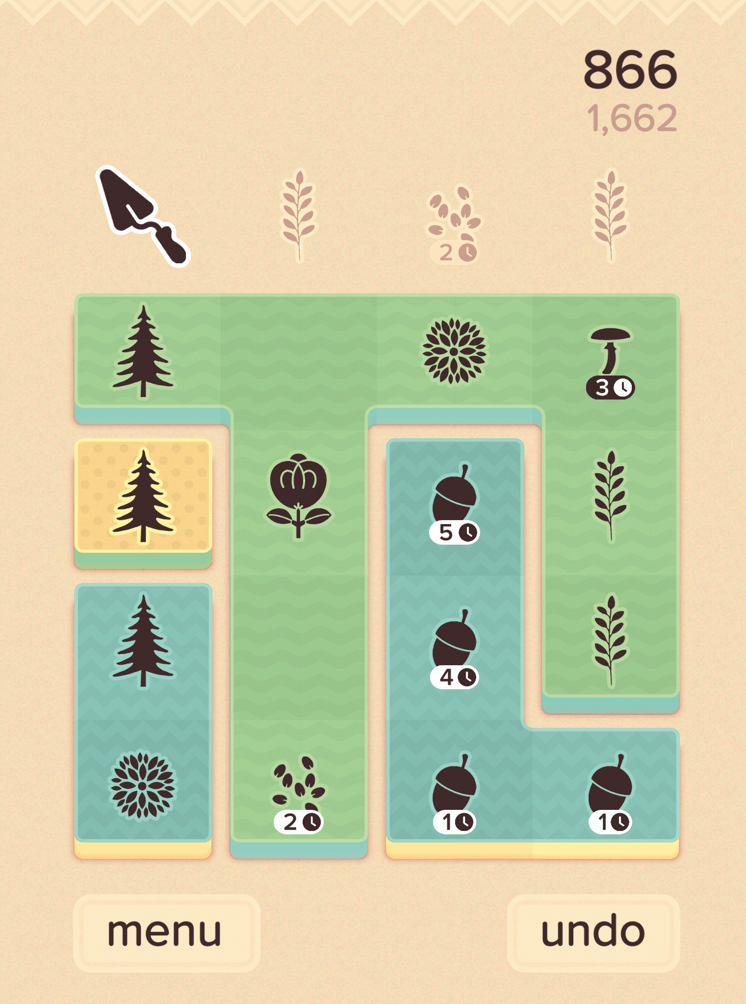 Auf einem in sechzehn Parzellen unterteilten Acker pflanzt der Spieler die drei am oberen Bildschirmrand vorgegebenen zufälligen Gewächse. Anschließend tippt man eine Pflanze an, diese und benachbarte Pflanzen gleichen Typs werden abgeerntet. Dann beginnt die nächste Runde mit neuen Setzlingen. Fehlt der Platz fürs Anpflanzen, ist das Spiel zu Ende.