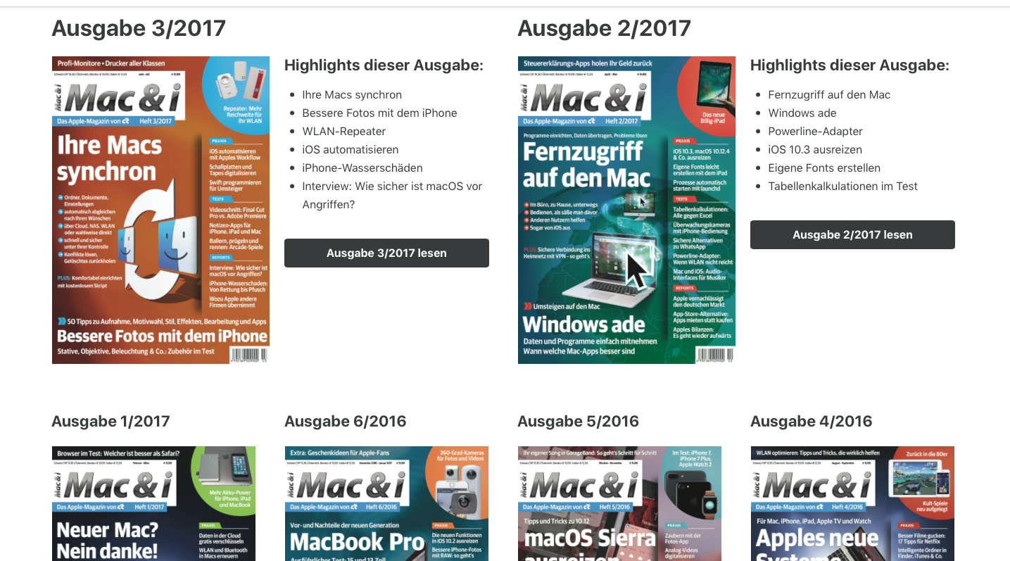 • Alle heise-Magazine im Browser und als PDF