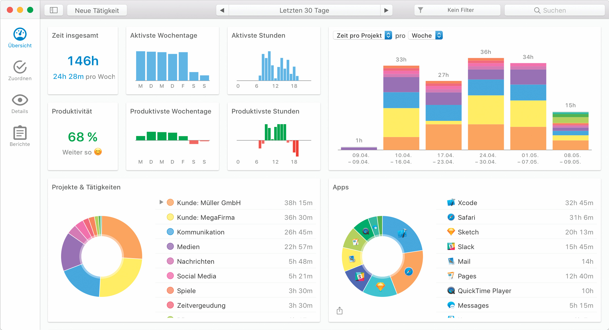 Timing 2 überwacht den Mac und nutzt die aufgezeichneten Aktivitäten zur Zeiterfassung oder Verhaltensanalyse.