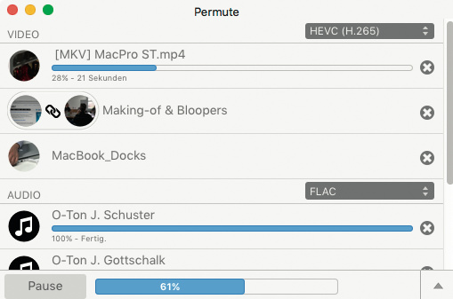 Permute wandelt Filme, Audio und Bilder stapelweise in gängige Formate um.