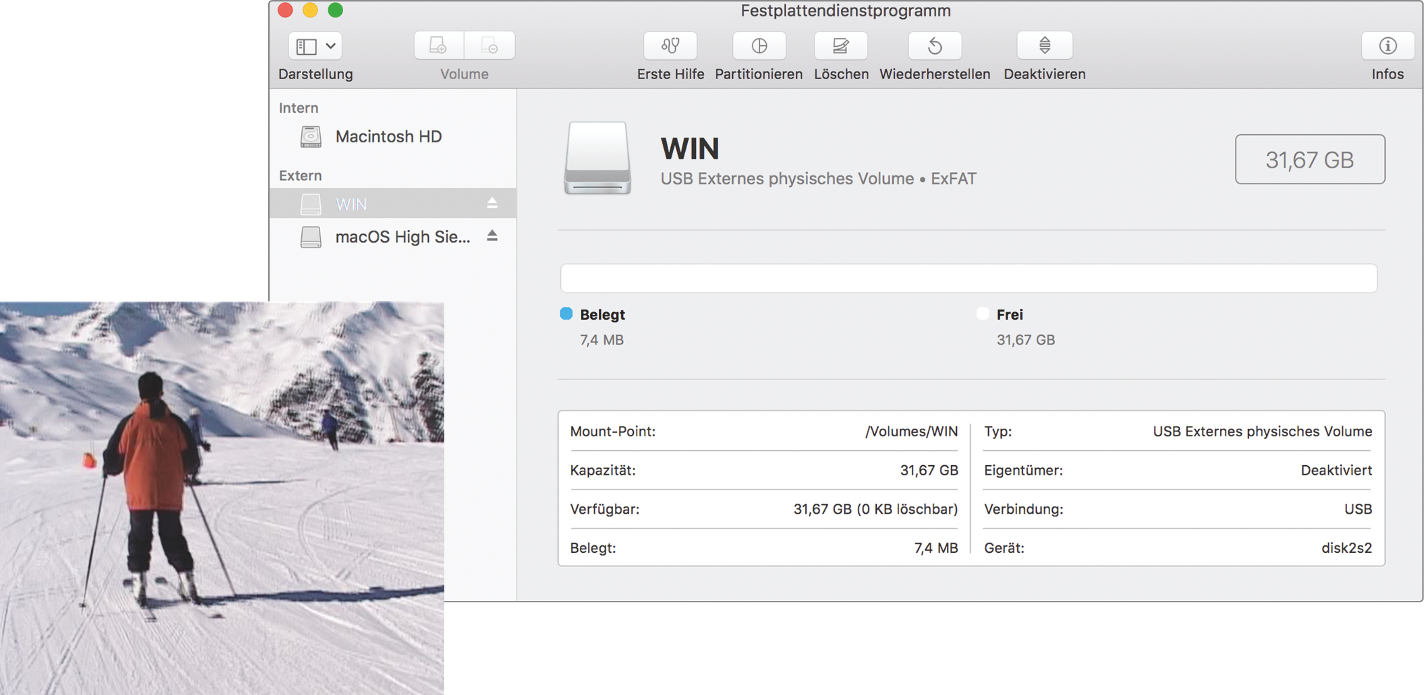 Bis macOS Sierra war es auch nach unseren Tests immer so, dass FAT32-formatierte Datenträger problemlos Dateien mit bis zu 4 GByte Größe akzeptierten. Das hat sich mit High Sierra geändert, es nimmt bei diesem Dateisystem nur noch Dateien bis 2 GByte an. Interessanterweise funktioniert es umgekehrt: Man kann also wie gewohnt bis zu 4 GByte große Dateien unter Windows aufspielen und diese dann auf den Mac herunterkopieren.