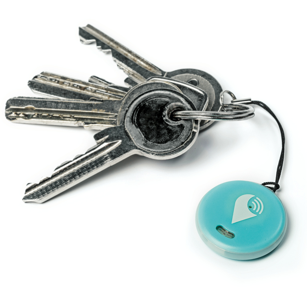So groß wie eine Zwei-Euro-Münze und doppelt so dick ist der kreisrunde Trackr Pixel. Er passt bequem in die meisten Geldbörsen, alternativ wird er an Gegenständen festgeklebt oder am Schlüsselbund befestigt. Zum Lieferumfang gehören Klebepads sowie kurze Schlaufen mit Schlüsselringen.