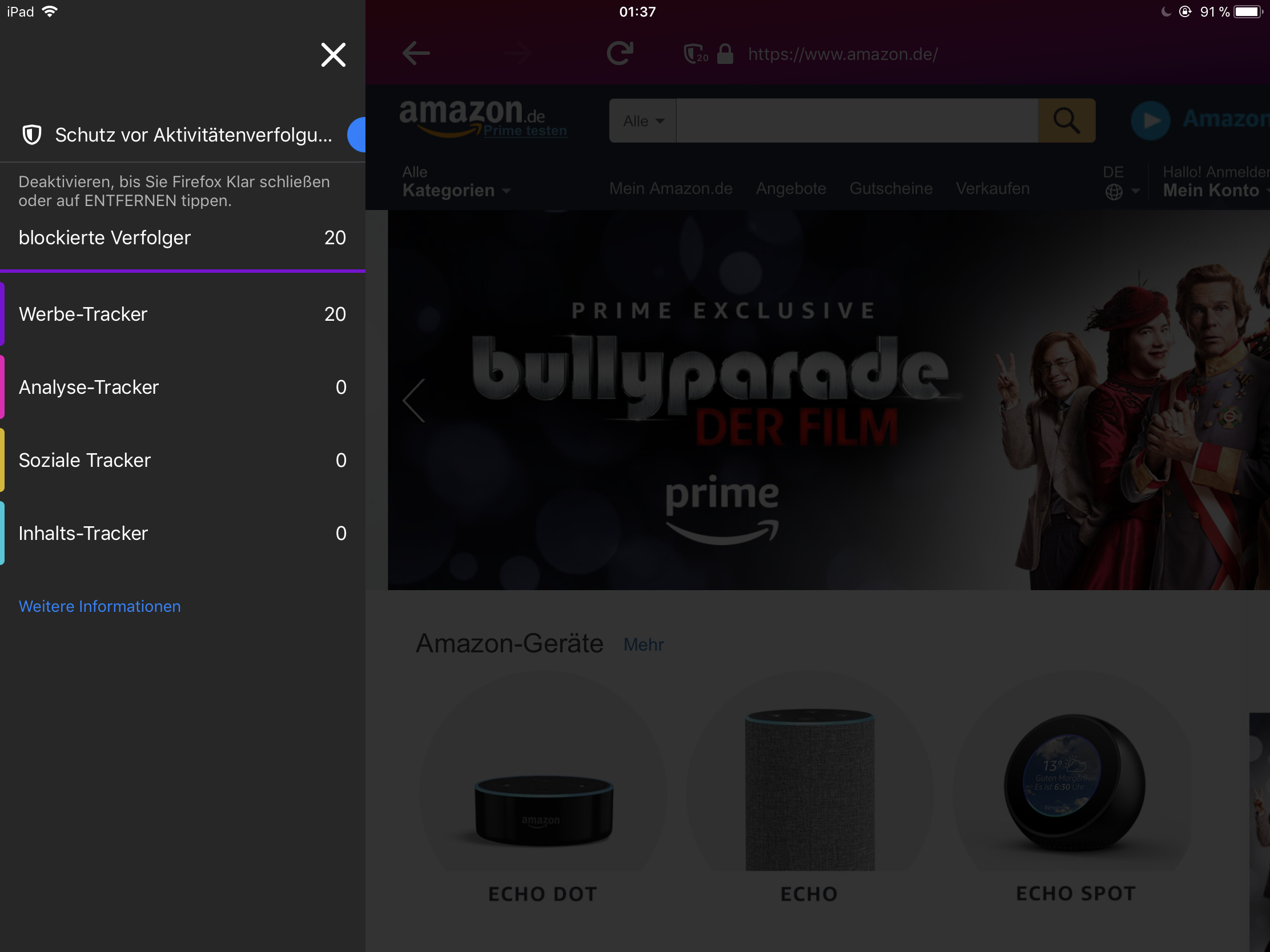 Wer doch mal ohne Schutz surfen will, tippt auf das Schutzschild-Bildchen in der Leiste, das nebenbei die Anzahl der für die aktuelle Seite geblockten Tracker anzeigt. In der getesteten Version war der Schalter für den Tracking-Schutz jedoch nur zur Hälfte sichtbar. Nach dem Abschalten konnten wir ihn nur durch einen Neustart des Browsers reaktivieren.
