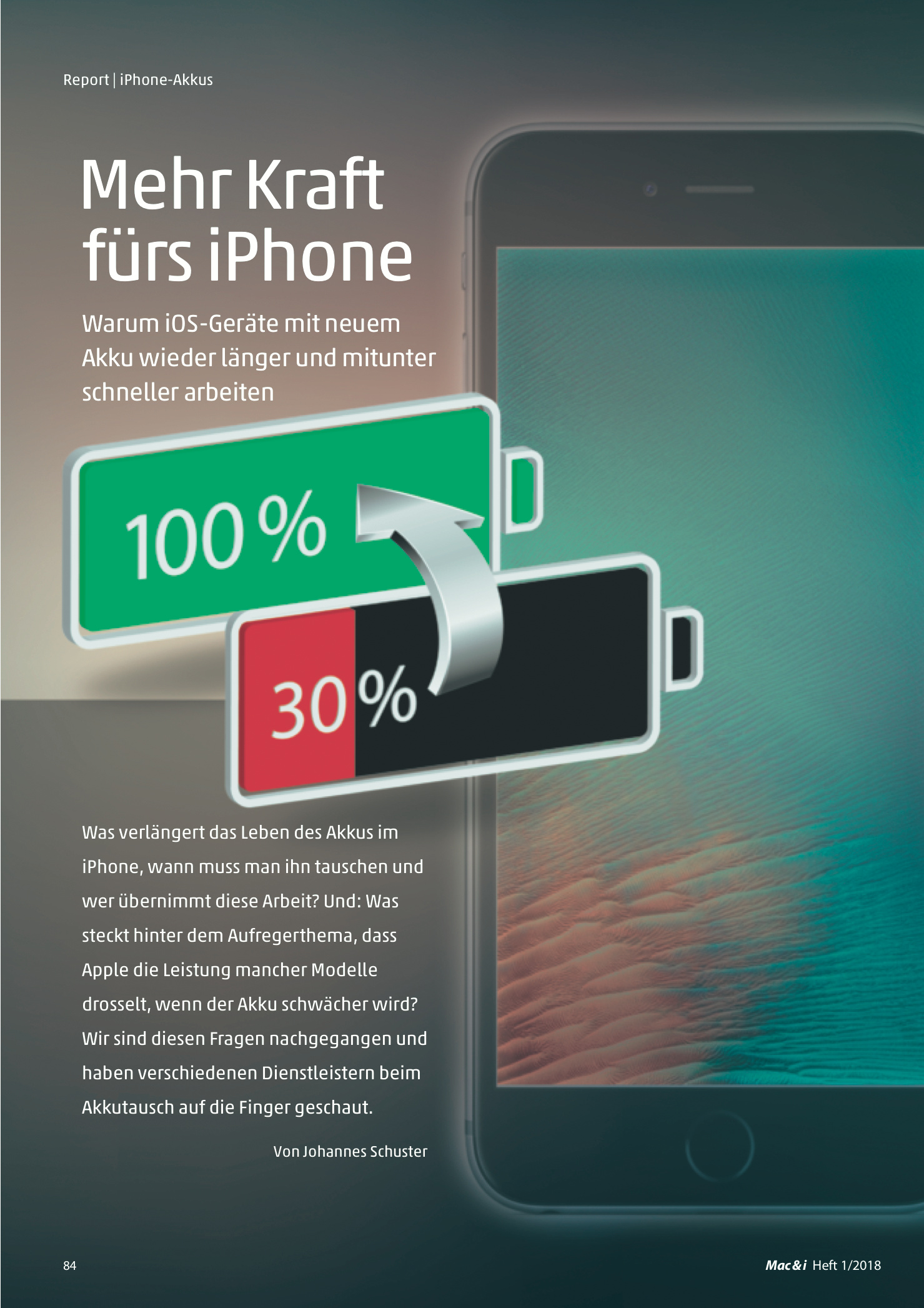 Mehr Kraft fürs iPhone, Warum iOS-Geräte mit neuem Akku wieder länger und mitunter schneller arbeiten, Mac & i Heft 1/2018, S. 84