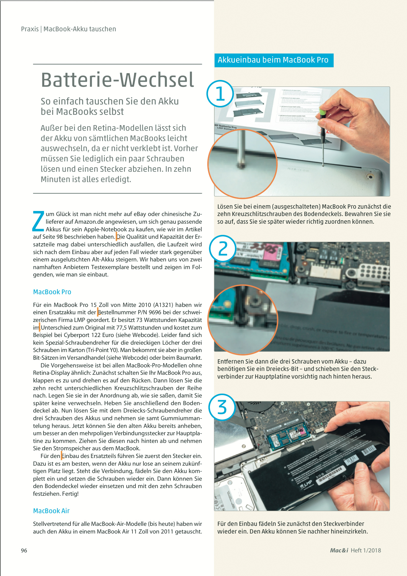 Akkutausch beim MacBook, Was Sie bei Apple und freien Werkstätten erwartet, Mac & i Heft 1/2018, S. 96