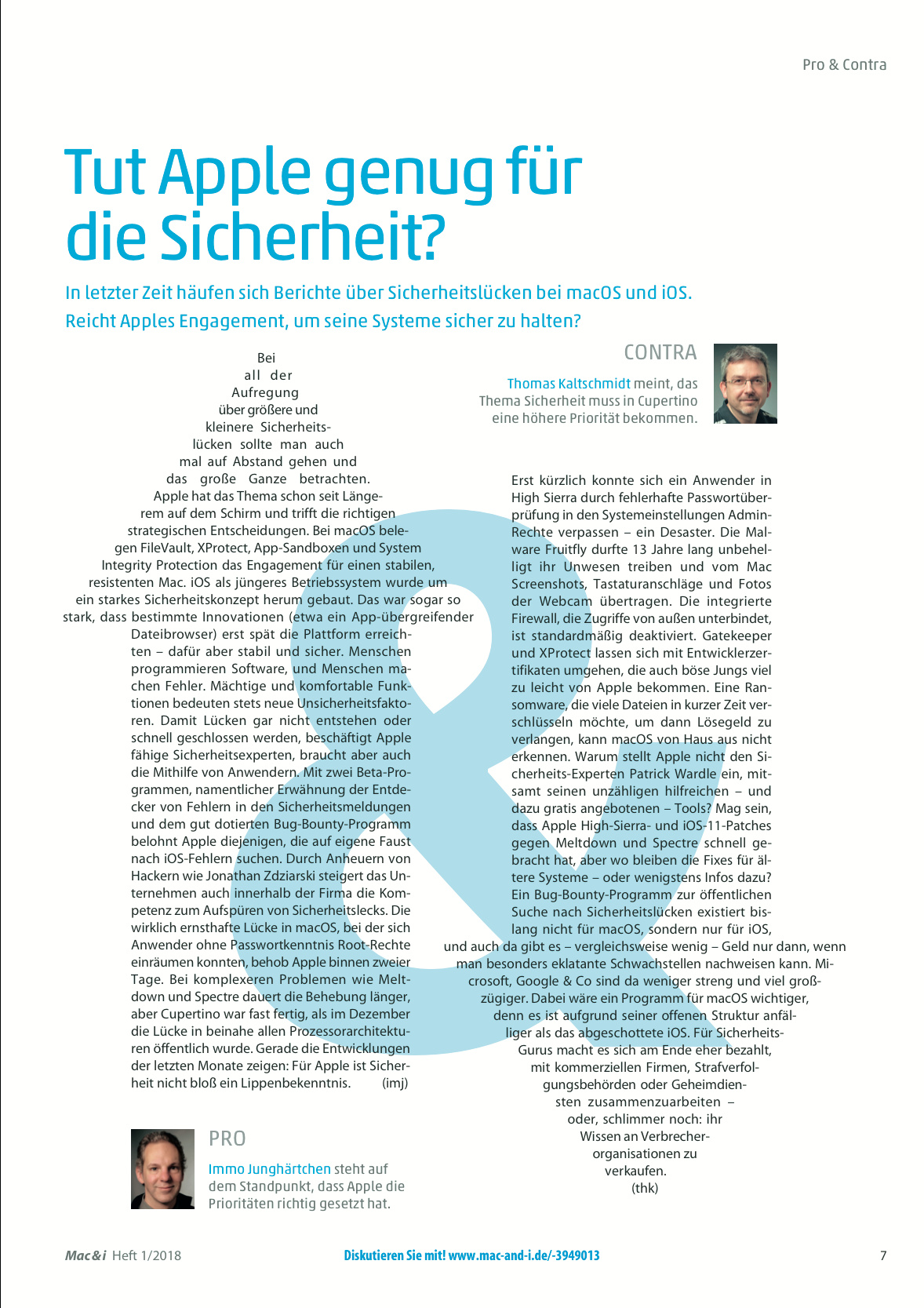 Pro & Contra: Tut Apple genug für Sicherheit?, Mac & i Heft 1/2018, S. 7