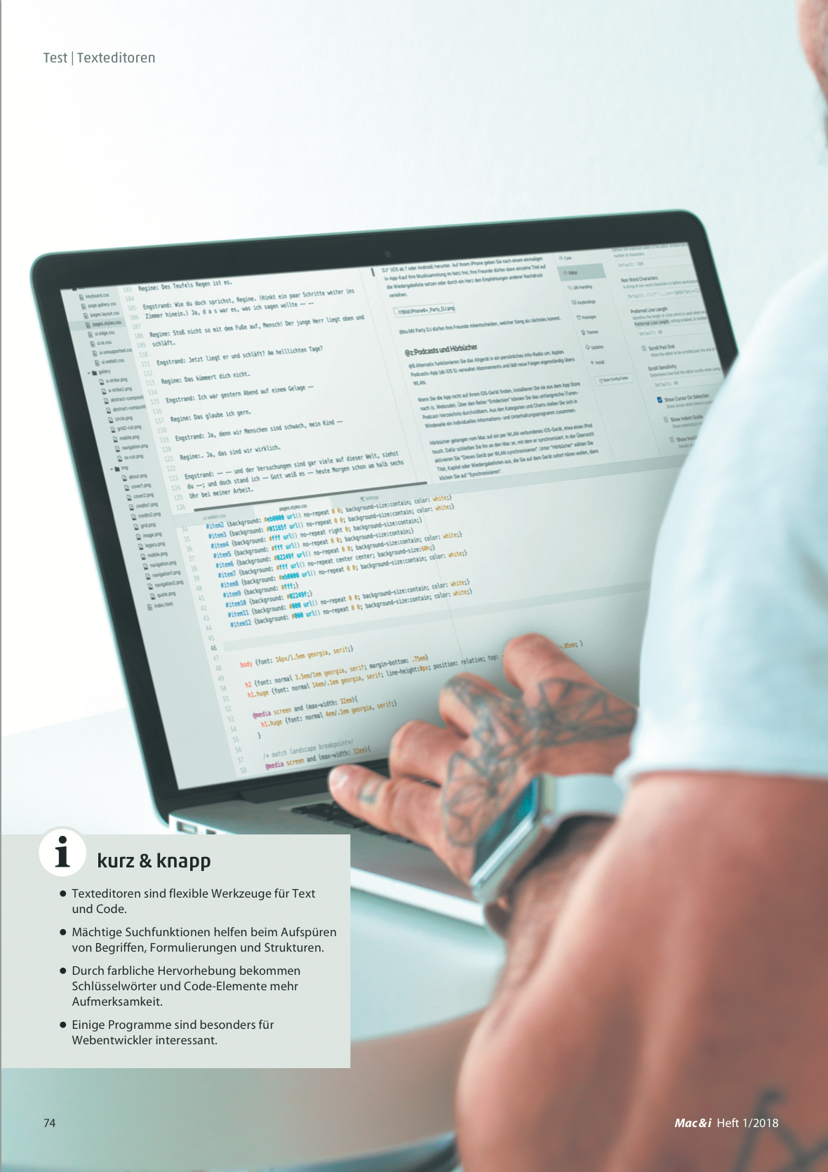 Formloses Schreiben, Texteditoren für macOS im Vergleich, Mac & i Heft 1/2018, S. 74