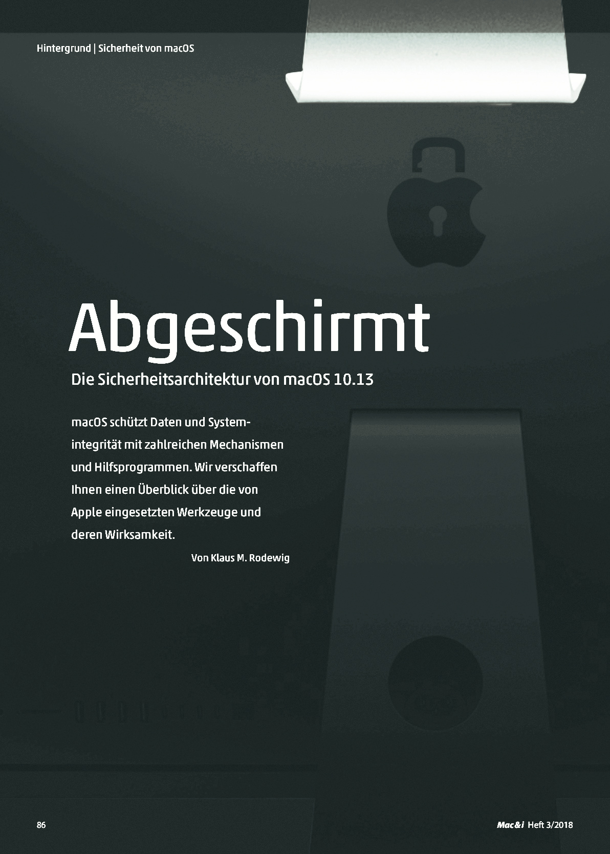 Abgeschirmt, Die Sicherheitsarchitektur von macOS 10.13, Mac & i Heft 3/2018, S. 86