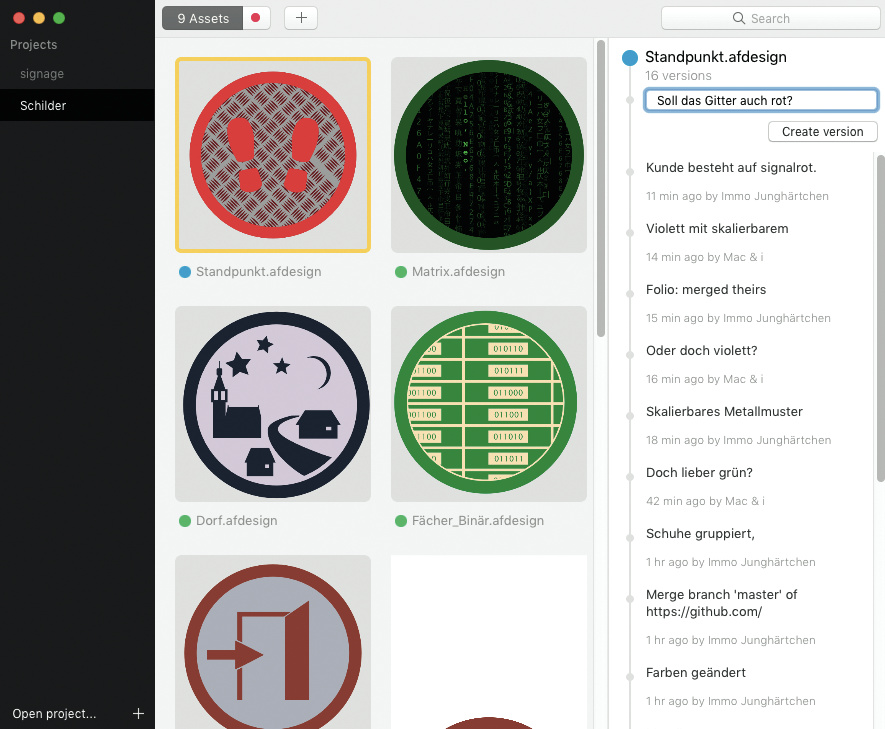 Folio verwaltet Bearbeitungsstände von Bildern, Illustrationen und Texten.