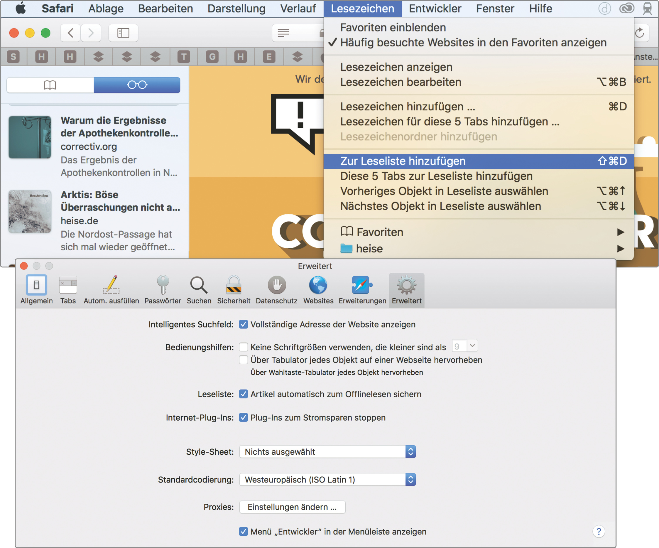 Der Browser ist sicherlich eine der meistgenutzten Apps. Viele Anwender wissen nicht, dass diese scheinbar schlichten Programme wahre Ressourcenfresser sein können und somit viel Potenzial zum Energiesparen bieten. Mac-Anwender sollten Safari als bevorzugten Browser nutzen, weil er deutlich weniger Energie verbraucht als etwa Chrome (vgl. „Spar-Bücher“ in c’t 2014, Heft 15, S. 118). So unterstützt Safari beispielsweise die Stromsparfunktion AppNap. Die verhindert, dass der Browser wenig oder gar keinen Strom verbraucht, wenn er von einem anderen Programm verdeckt wird. Auch Aktivitäten auf Websites (die in einem Reiter geöffnet sind, den man gerade nicht betrachtet) werden automatisch in ihrer Funktion eingeschränkt.