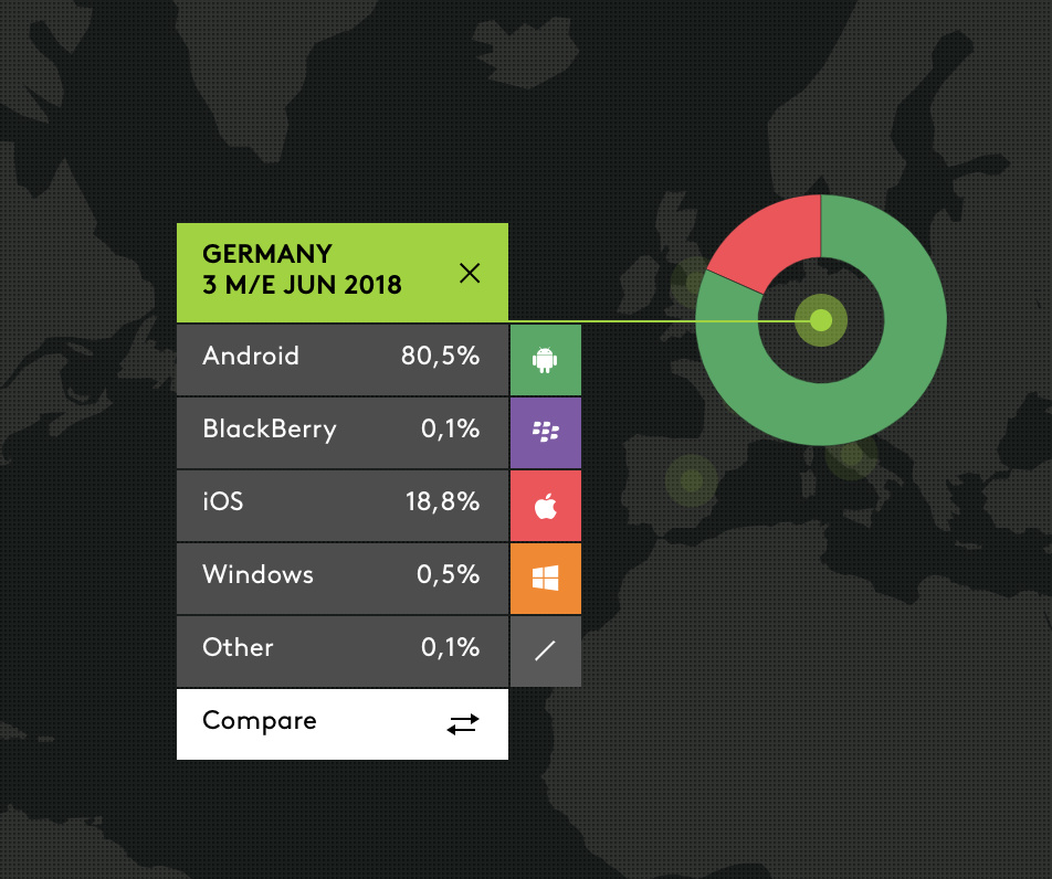 So überrascht es niemanden, dass der Marktanteil des vergleichsweise teuren iPhones von Apple hierzulande deutlich niedriger ausfällt als in anderen führenden Industrienationen. Im Heimatland USA kam das iPhone nach den Zahlen des Marktforschers Kantar zuletzt auf knapp 39 Prozent Marktanteil. In Japan liegt der iPhone-Anteil sogar bei stolzen 43 Prozent, in Großbritannien bei knapp 35 und in Frankreich immerhin noch bei 22,5 Prozent. In Deutschland dagegen haben sich laut der Kantar-Statistik zuletzt lediglich 18,8 Prozent der Menschen für ein iPhone entschieden. Nur in Italien liegt der Anteil mit 11,1 Prozent noch niedriger.