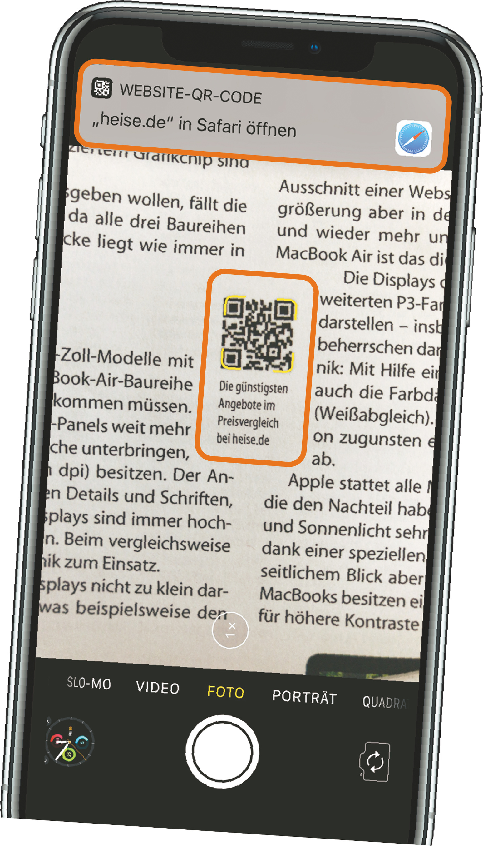 Seit kurzem finden Sie in allen Artikeln, in denen wir Produkte erwähnen oder testen, einen QR-Code. Wenn Sie diesen mit Ihrem iPhone oder iPad abscannen (Android-Geräte können das auch), landen Sie automatisch im Heise-Preisvergleich, wo wir für Sie die jeweils günstigsten Angebote zusammengestellt haben. So können Sie unter Umständen viel Geld sparen.