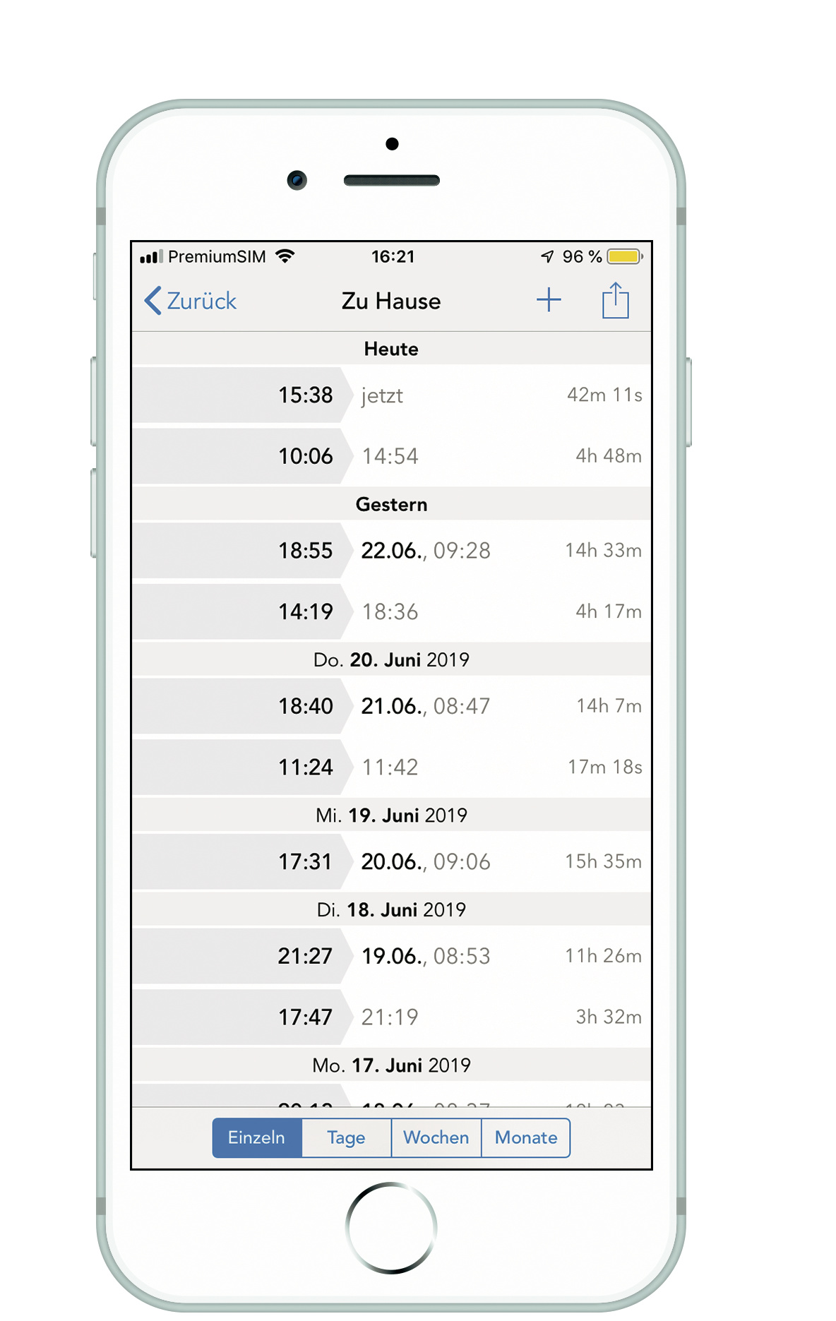Die zu überwachenden Orte lassen sich über die aktuelle Position, eine Adresssuche oder anhand von Kontakten einrichten. Wer es ganz genau nimmt, trägt Geo-Koordinaten ein. Flexibilität bietet die Unterstützung von iBeacons, um über die Mini-Sender beispielsweise die Zeit im Auto zu erfassen. Zudem macht die App selbsttätig Vorschläge für häufig besuchte Orte. Die Protokollierung einzelner Orte lässt sich per Wischgeste pausieren.