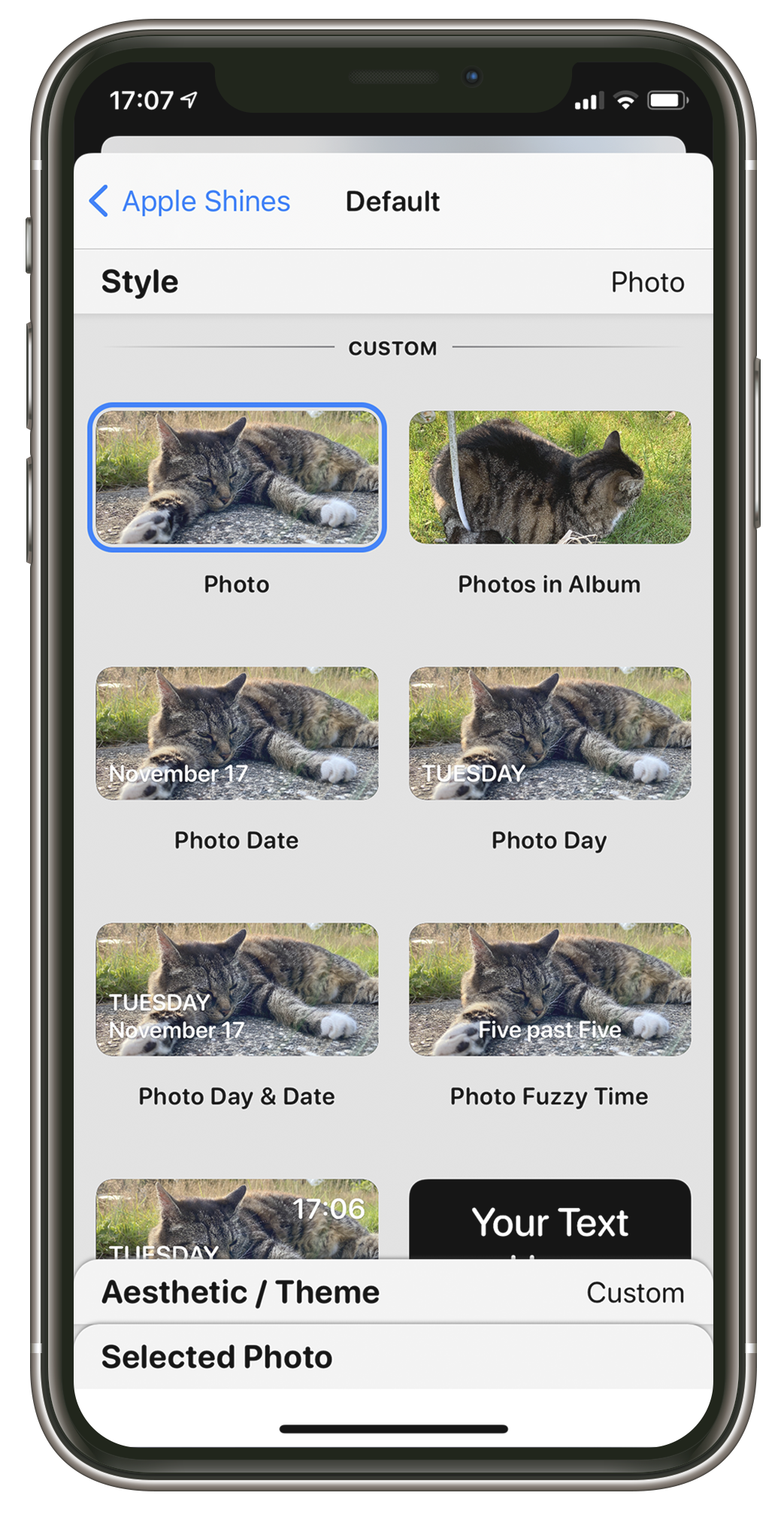 Widgetsmith kennt zahlreiche Styles, um gezielt Fotos auf dem Homescreen anzuzeigen, unter anderem auch kombiniert mit Datum und Uhrzeit.