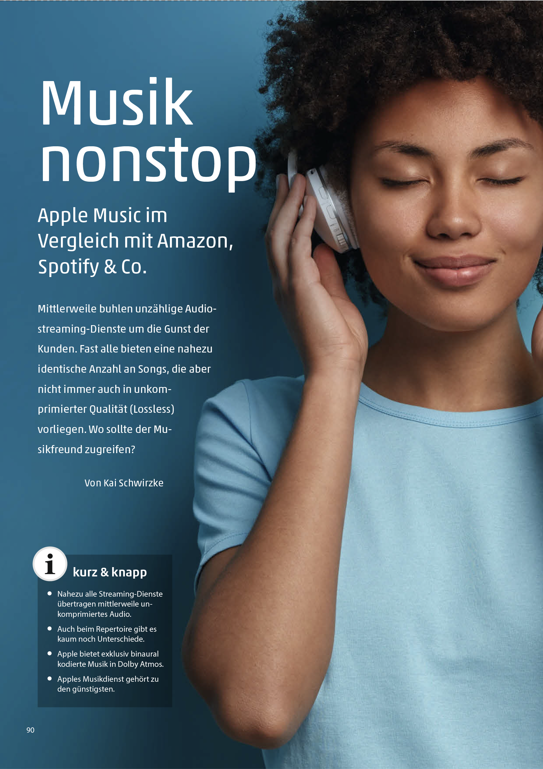 Musik nonstop, Apple Music im Vergleich mit Amazon, Spotify & Co., Mac & i Heft 5/2021, S. 90