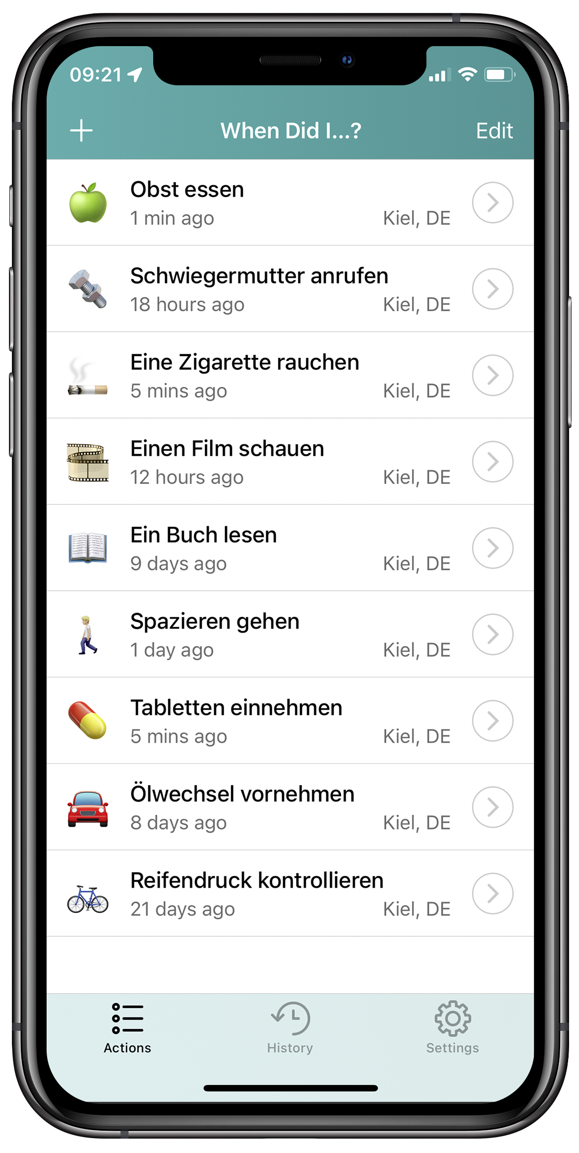 Beim ersten Start präsentiert die englischsprachige App zahlreiche typische und mit Emojis illustrierte Tätigkeiten, denen viele Nutzer mehr oder minder regelmäßig nachgehen dürften. Dabei reicht die Spanne von Haushaltsarbeiten wie dem Wechseln der Rauchmelder-Batterie oder der Bettwäsche über Körper- und Haustierpflege bis hin zur letzten sportlichen Betätigung im Fitnessstudio.