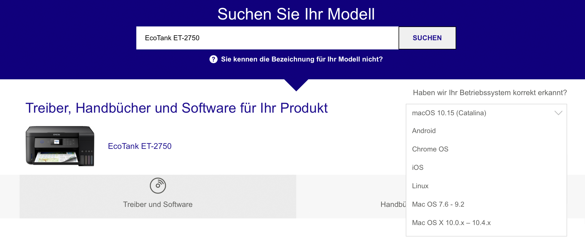Zu diesem gar nicht so alten Drucker von 2017 bietet Epson keine Treiber für macOS Monterey.