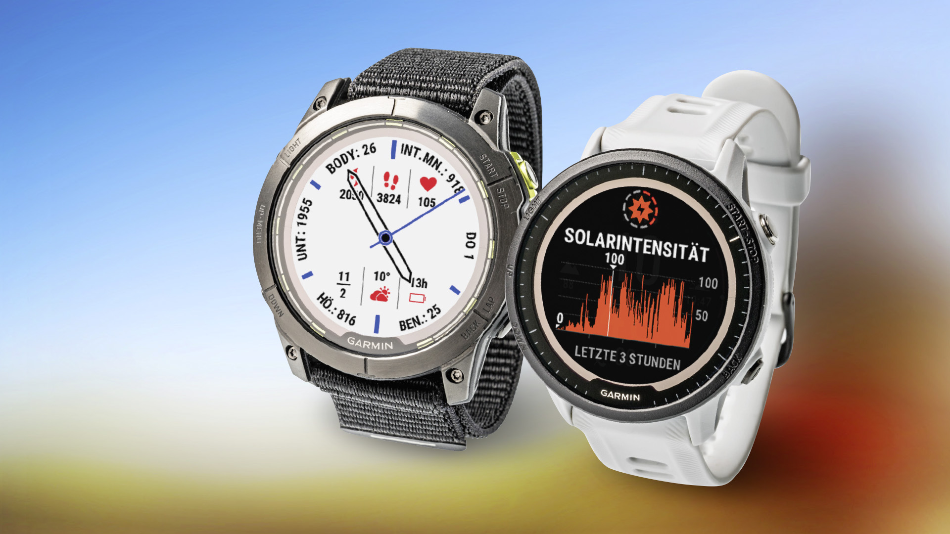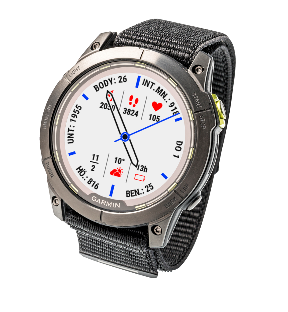 Neben den üblichen markigen Tasten besitzen die beiden Garmin-Multisportuhren ein Touch-Display mit kleinen Unterschieden in der Bedienung. Software-Updates installiert Garmin im WLAN automatisch, wenn man in der Kompagnon-App Garmin Connect in den Einstellungen zur Uhr unter „System > Software-Update“ die Berechtigung erteilt.