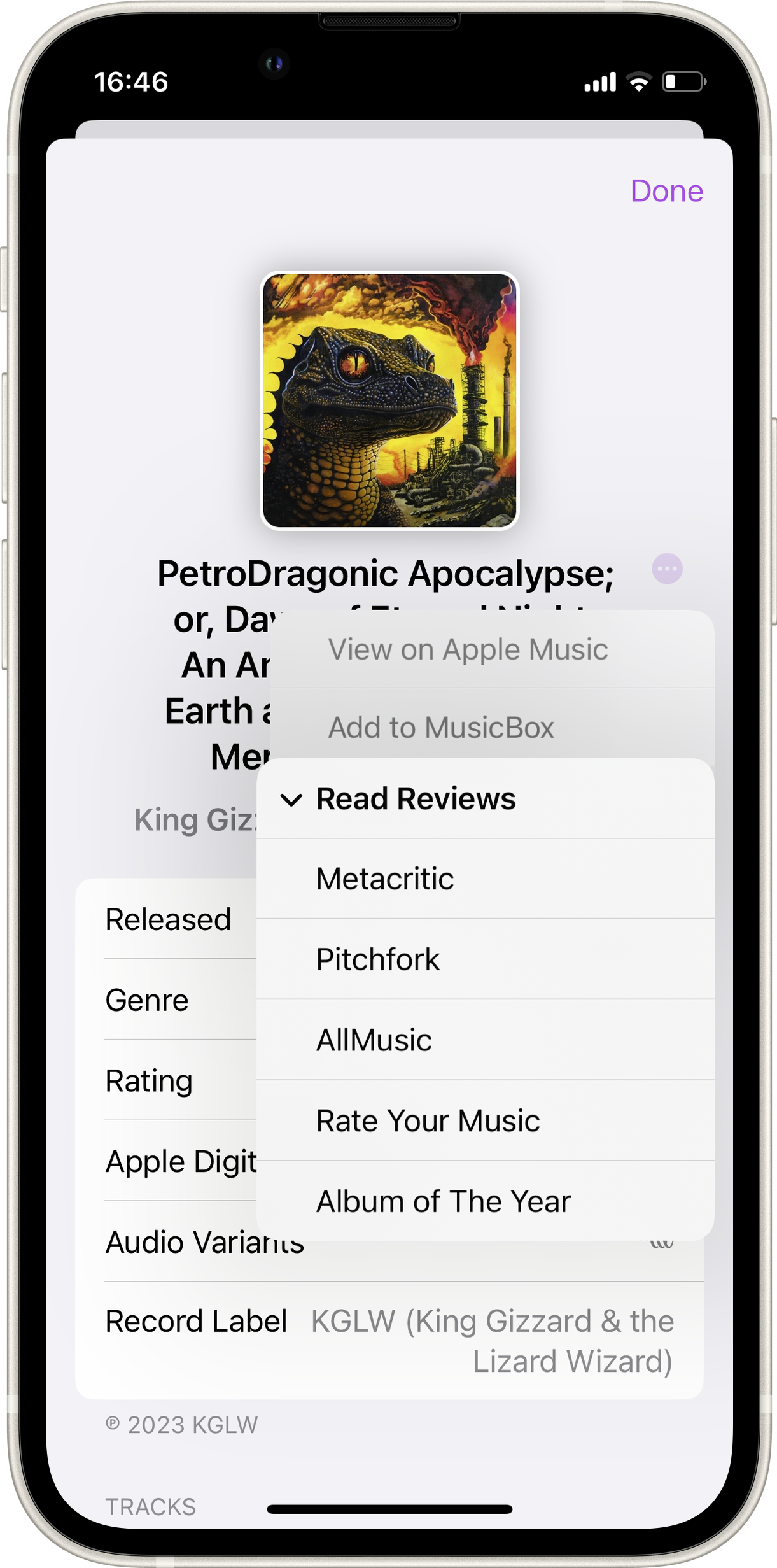 MusicSmart zeigt umfangreiche Infos zu Songs, Alben und Künstlern.