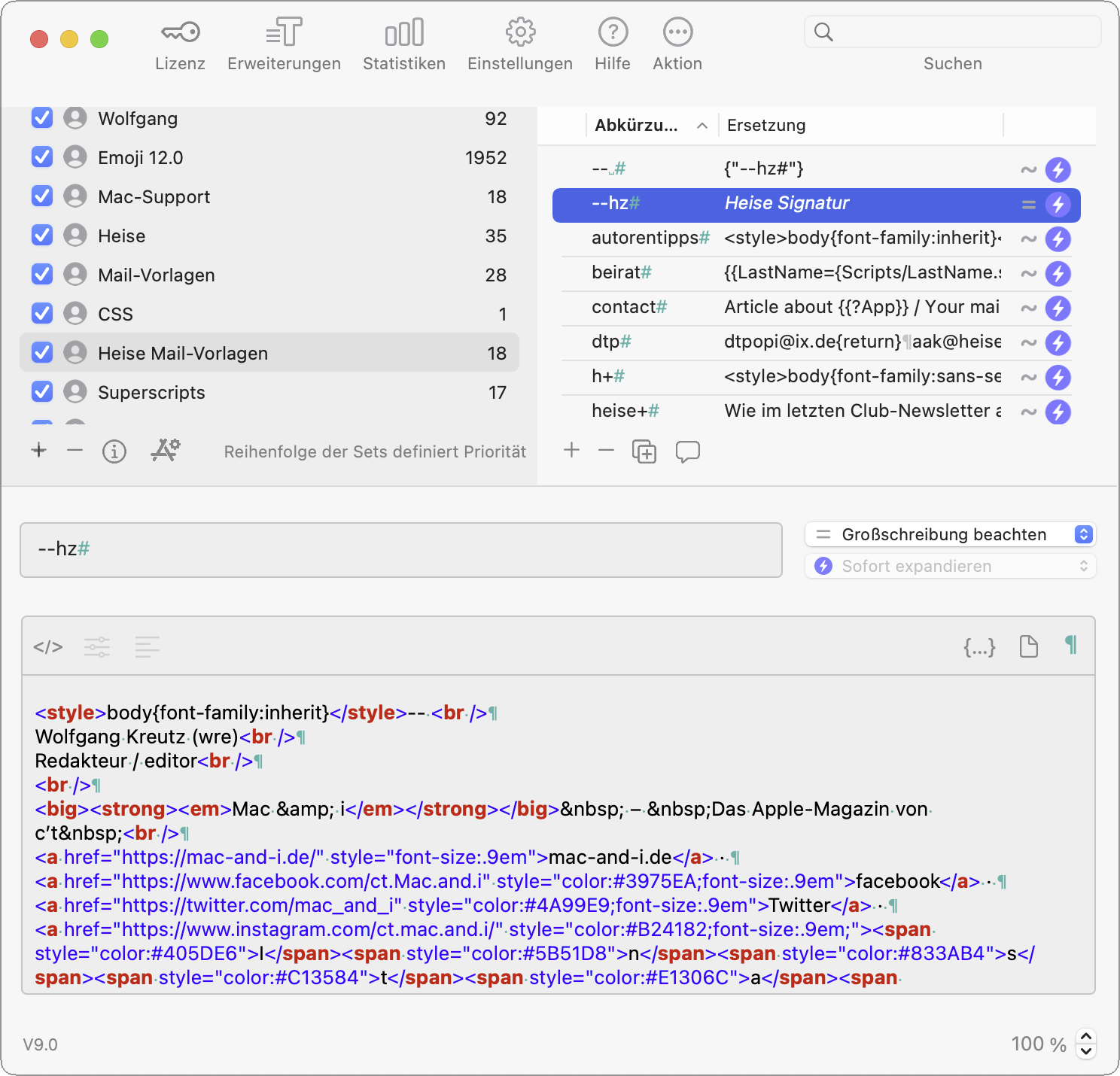 Typinator 9 für macOS ersetzt Abkürzungen durch Textbausteine.