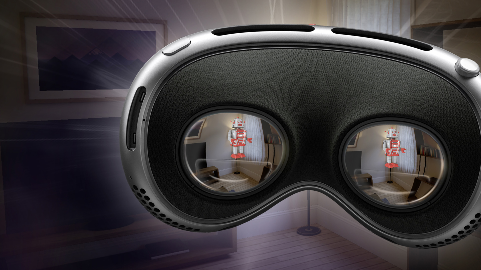 Bei der Vision Pro, die wir in Mac & i 4/2023 ausführlich vorgestellt haben, handelt es sich um einen eigenständigen Spatial-Computer. Spatial deshalb, weil sich alles im Raum abspielt. Apps, Audio und Interaktion werden dreidimensional erfasst und wiedergegeben. An der Außenseite eingelassene Kameras erfassen Gesten und nehmen die Umgebung auf. Dass der Nutzer durch die Brille seine Umgebung sehen kann, wird als Passthrough bezeichnet. Im Fall der Vision Pro kann man allerdings nicht tatsächlich durch die Brille hindurch sehen; stattdessen sieht der Headset-Träger seine Umgebung auf zwei Displays im Inneren des Headsets, wo sie sich gegebenenfalls mit anderen, eingespielten Inhalten wie Apps oder einer Umgebung vermischt. Passthrough kann mehr oder weniger eingeschränkt sein, je nach Kontext und Immersions-Stufe (wie viel der Nutzer von der realen Umgebung in weiter Ferne noch sieht). Die Steuerung erfolgt überwiegend mit Handgesten und per Augen-Tracking. Hierfür erkennt die Vision Pro, wenn der Nutzer etwa ein Objekt oder Steuerelement mit den Augen fokussiert.