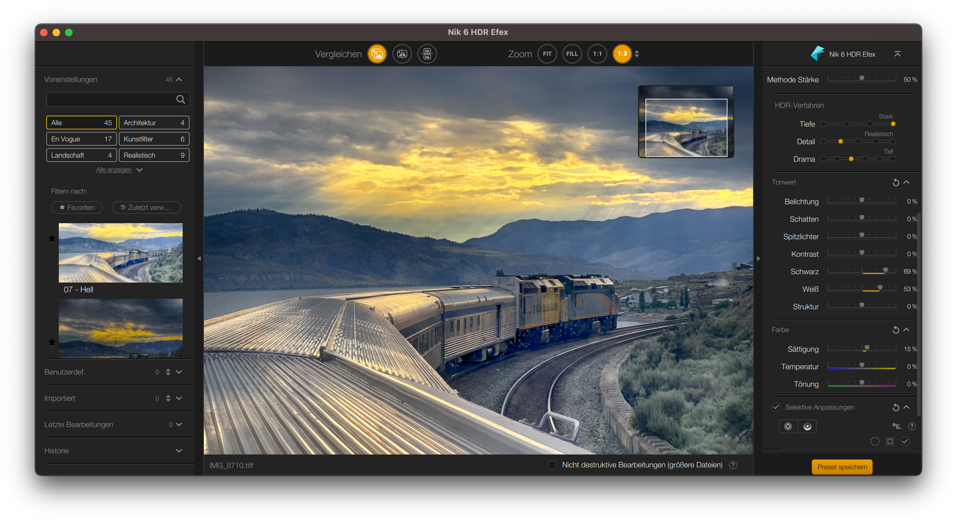 - Nik HDR Efex (Screenshot oben) sorgt für die HDR-Anmutung,