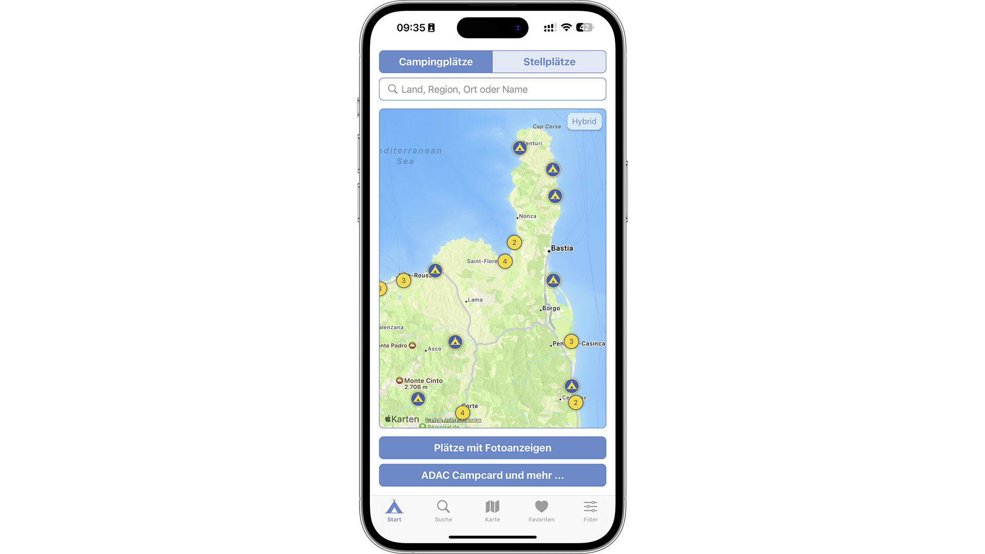 Wer klassische Reiseführer auf dem Smartphone kennt, ist erst einmal skeptisch: Ein gedrucktes Buch, in dem man für die Recherche viel hin- und herblättern möchte, sticht die digitale Version haushoch aus. Nun wiegt schon der ADAC Campingführer in der Ausgabe Südeuropa 2024 mit seinen 1248 Seiten 1,6 Kilo, dazu gibt es noch Nordeuropa und den Stellplatzführer. Die App dagegen verhält sich mit ihren 330 Megabyte im Reisegepäck gewichtsneutral und trägt nicht dick auf. Ohne installiertes Bücherregal im Wohnmobil oder Wurfzelt liegt da der Griff zur Smartphone-Anwendung nahe. Kann sie noch weitere Punkte im Rennen gegen das Standardwerk auf Papier für sich verbuchen?