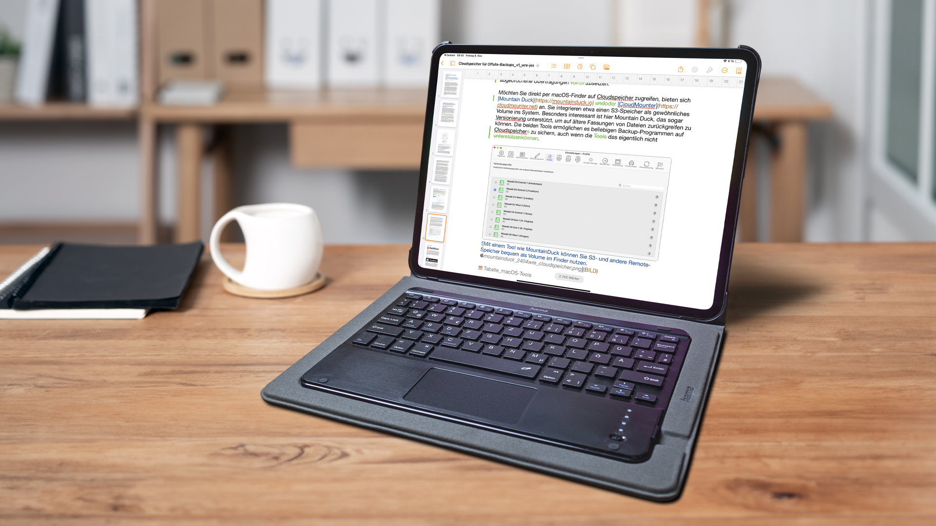 Zwar bringen iPads eine Bildschirmtastatur mit, doch zum einen blockiert sie einen großen Teil des Bildschirms und zum anderen nervt das Tippen auf hartem Glas, noch dazu ohne taktiles Feedback. Warum also nicht zu einem externen Keyboard greifen?