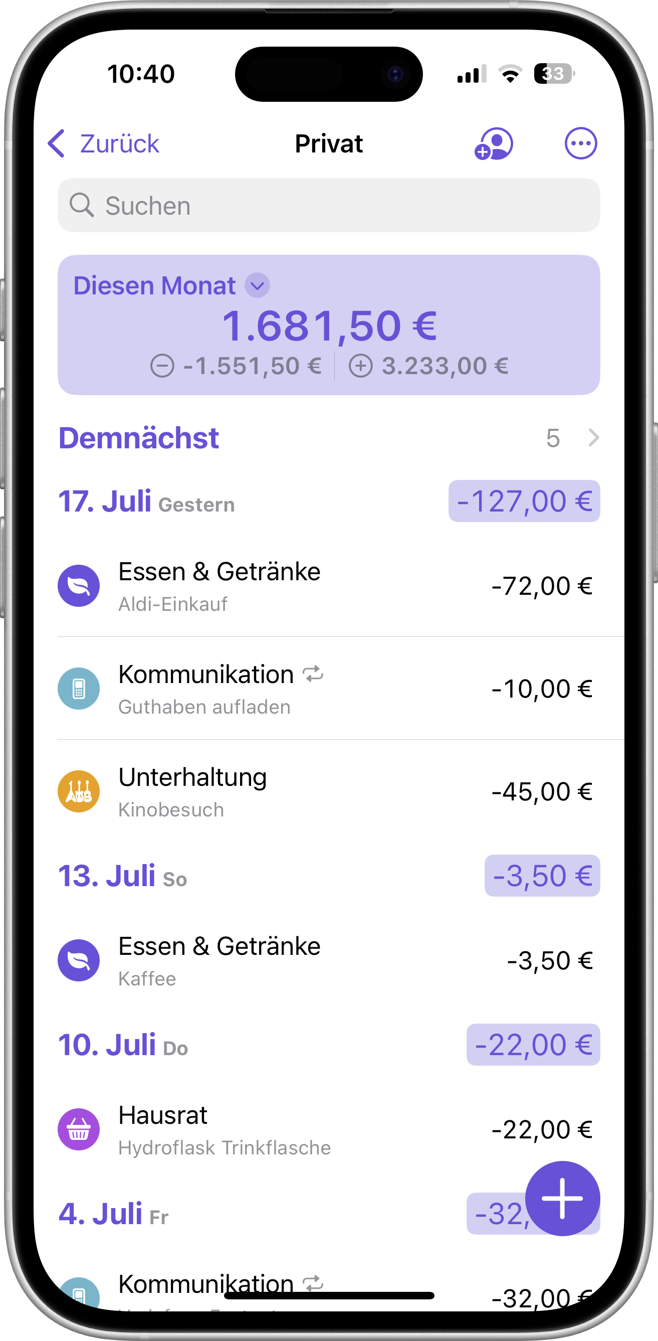 Expenses hilft dabei, den Überblick über Einnahmen und Ausgaben zu behalten.