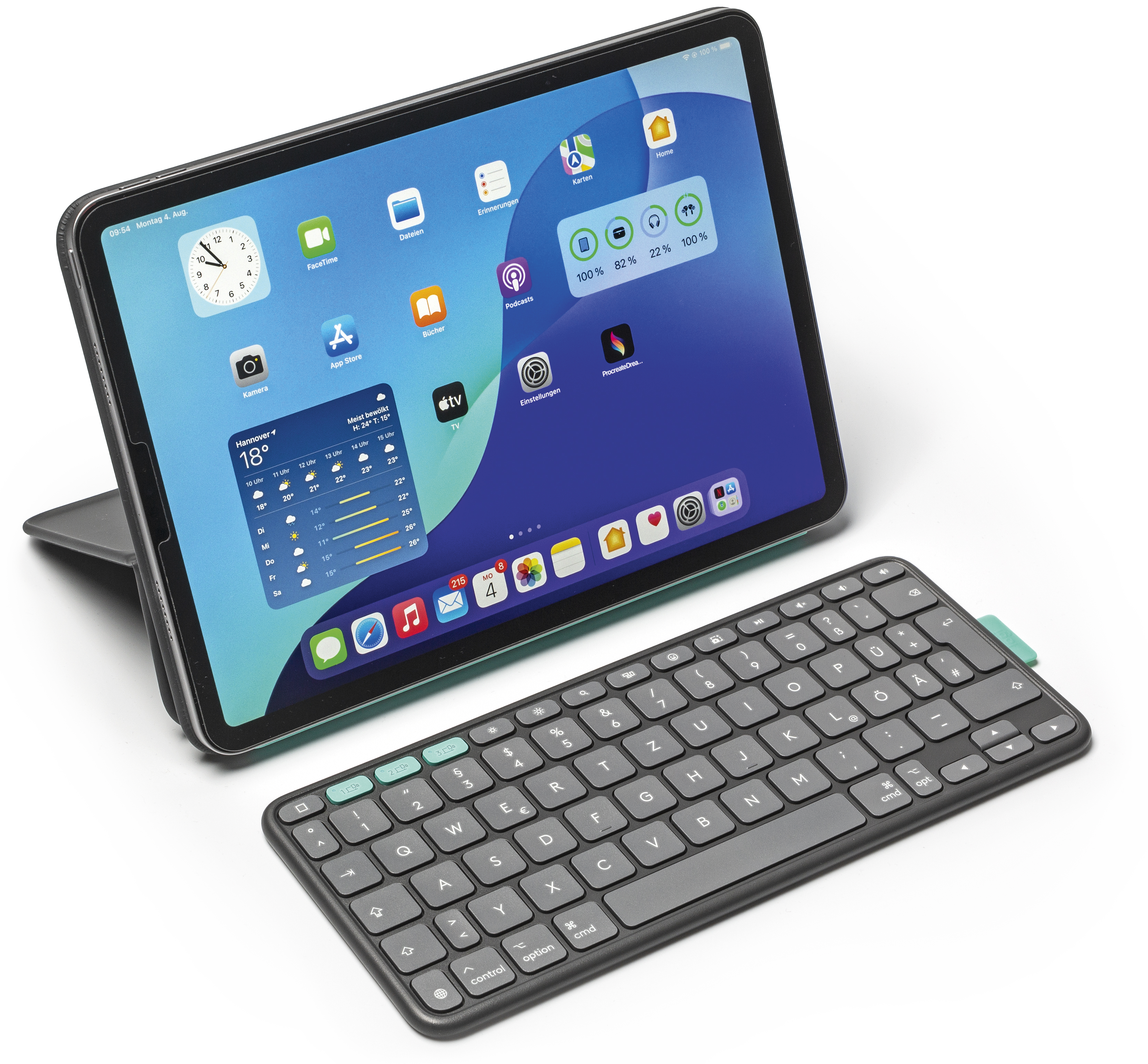 Wie bei Apples Magic Keyboard haftet die Hülle magnetisch am Tablet und spart das Kameramodul aus. Das Flip Folio gibt es in 11 und 13 Zoll. Es eignet sich für das iPad Air mit M2- oder M3-Chip sowie das iPad Pro ab dem M4. Zwar passt auch ein iPad Pro M2 ins Flip Folio, man muss dessen Kameramodul aber sehr kräftig durch die Aussparung drücken.
