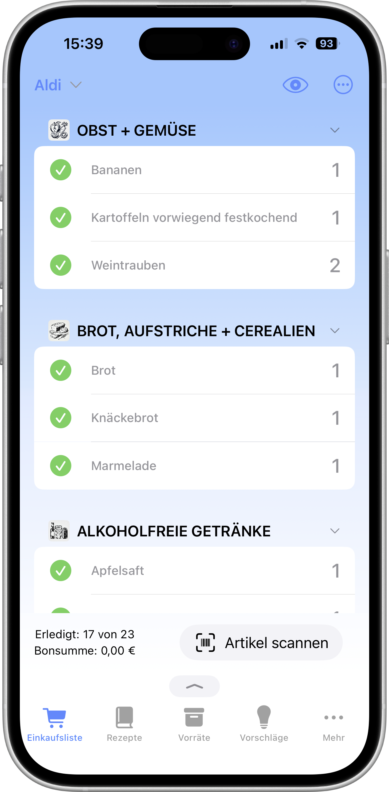 ListMe unterstützt beim Einkaufen, der Lagerhaltung und sammelt Rezepte.