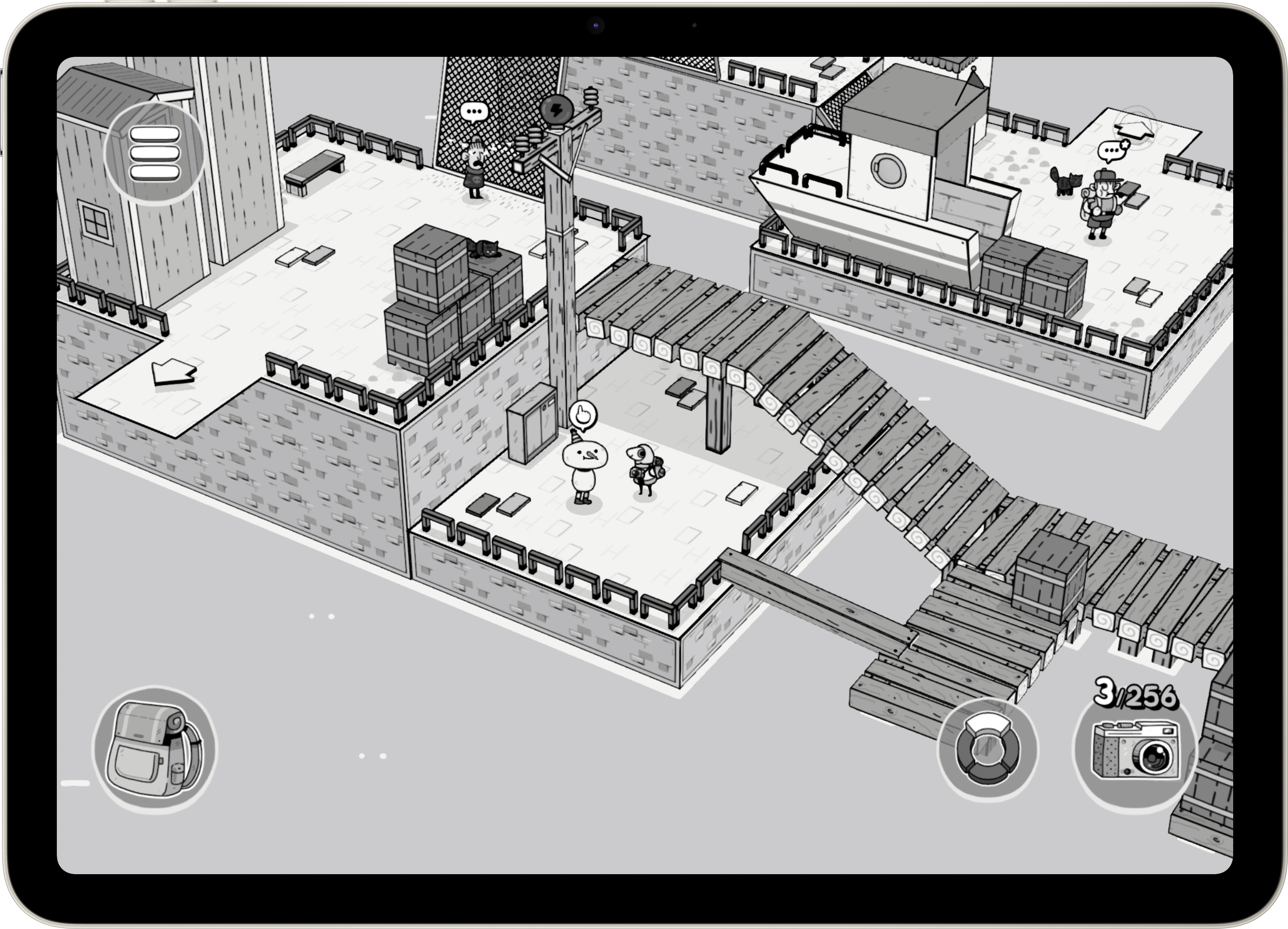 Das Toem ist ein mysteriöses Naturereignis, das jeder einmal erleben sollte. Deshalb begibt sich der fotografiebegeisterte Held des gleichnamigen Spiels auf eine abenteuerliche Reise in die Region Kiiruberg, um das Toem festzuhalten. Das im Cartoonstil in Grautönen gehaltene Abenteuer verbreitet von der ersten Spielminute an Ruhe und Behaglichkeit. Die Bewohner der isometrisch präsentierten Welt zeigen sich durchweg freundlich, und selbst die sporadisch auftretenden Monster entpuppen sich als harmlos. Während der Spieler den Fotografen mit Tippgesten durch die frei dreh- und zoombare Landschaft dirigiert, dudelt im Hintergrund unaufdringlich Lo-Fi-Musik. Alles in Toem ist entspannt.