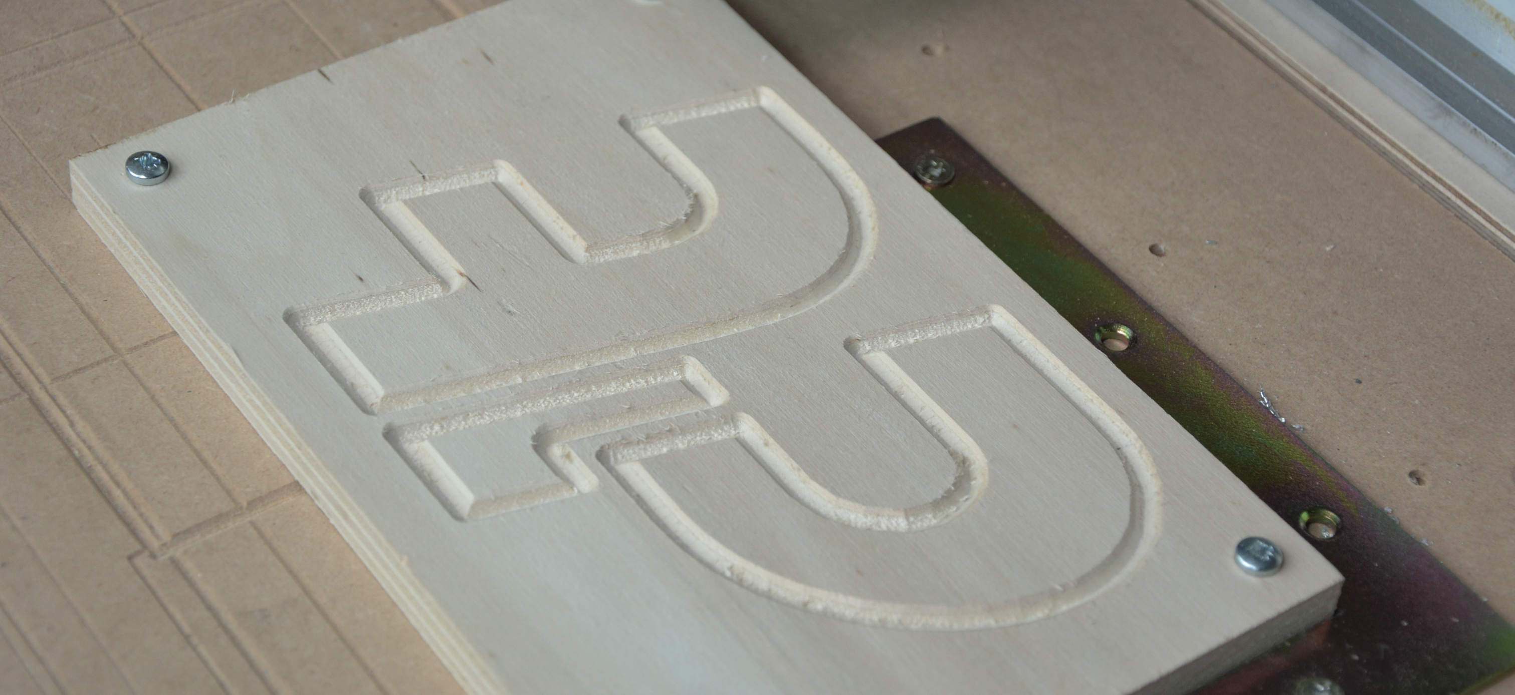 Für den Einstieg und gelegentliche Arbeiten durchaus praktikabel: Die zu fräsende Platte einfach mit ein paar Spax-Schrauben auf dem Maschinentisch beziehungsweise der „Opferplatte“ festschrauben. Da letztere leicht ersetzt werden kann, spart man sich sogar die Unterlagen. Verwendet man unter den Schrauben große Unterlegscheiben, muss man das Werkstück noch nicht einmal anbohren, es wird lediglich unter die Scheiben geklemmt.