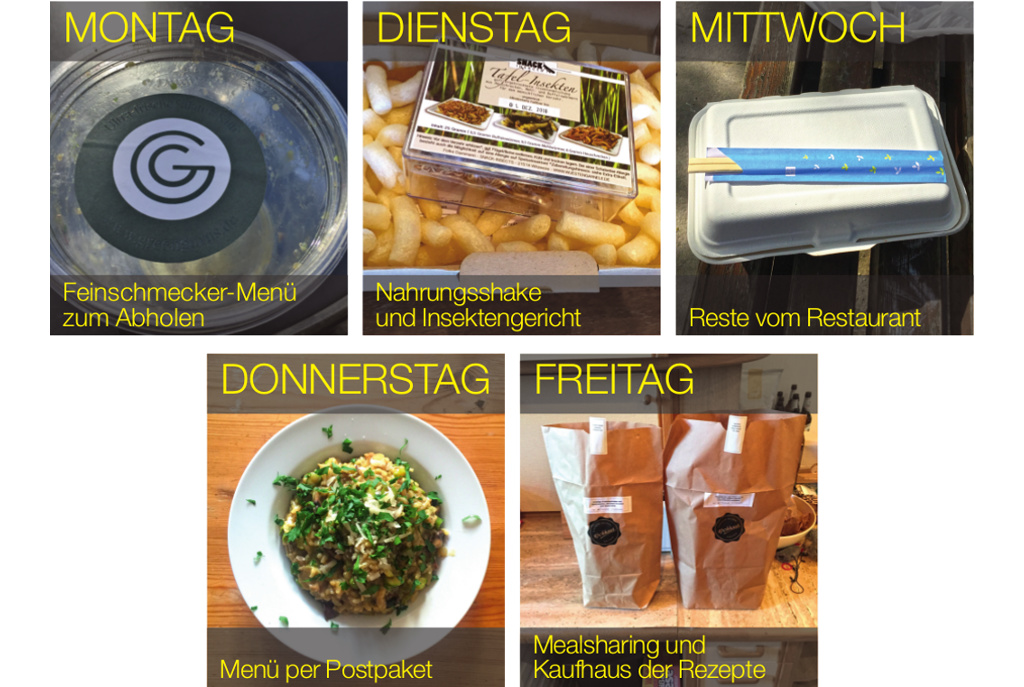 Neue Angebote sollen unser Ernährungsverhalten umkrempeln. Von der Verwertung übrig gebliebener Restaurant-Menüs bis zum Insekten-Snack – das Internet ist das Buffet der Moderne. Unser Autor hat sich fünf Tage lang durchgefuttert.