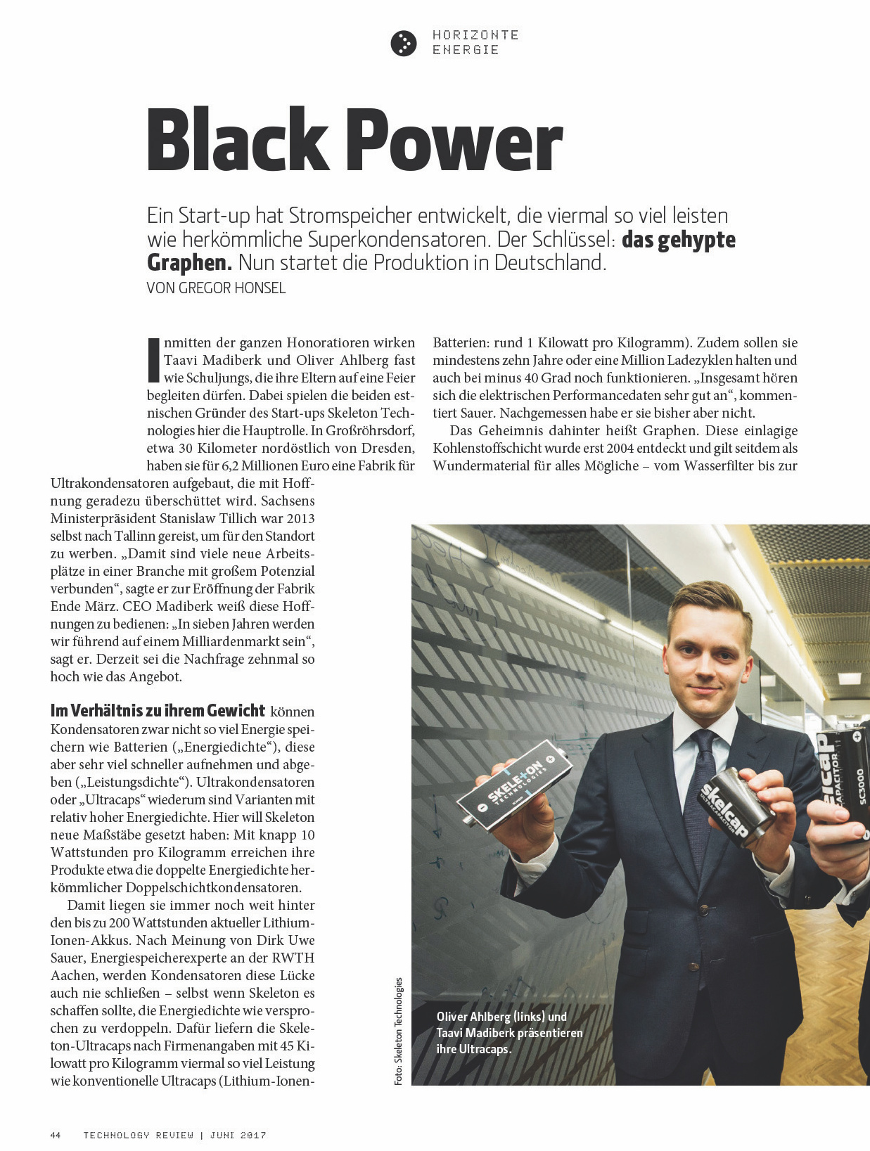 Der Faktor vier in der Leistungsdichte hört sich spektakulär an, ist aber in den meisten Applikationen irrelevant. Normale Supercaps sind schon sehr gut, was die Leistungsdichte angeht. Der Faktor zwei in der Energiedichte ist da schon relevanter. Aber die Kosten sind leider nicht diskutabel. Wenn sie die nicht in den Griff bekommen, reden wir hier nur von einem Nischenmarkt. Trotzdem viel Erfolg!