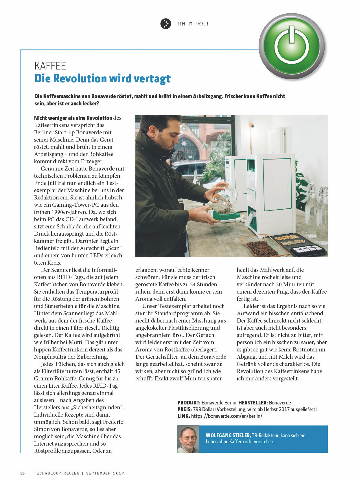 Der Artikel ist sehr interessant, aber mich verwundert das Fazit eures Testers nicht, denn – neben einer Vielzahl von wichtigen Elementen wie zum Beispiel Wasserqualität und Brühtemperatur – der Röstvorgang ist von großer Bedeutung. Und der kann in einer Maschine für eine Tasse Kaffee nicht so gelingen, dass man Wunder erwarten sollte. Mich überrascht vielmehr, dass er überhaupt schmeckte. Um Kaffee möglichst optimal aromatisch und mit möglichst wenig Bitterstoffen zu machen, braucht es einen lang andauernden und „sanften“ Röstvorgang. Das ist schon bei den großen Massenherstellern nicht möglich, ohne den Kaffee entsprechend teurer herzustellen und die Profithöhe nicht zu gefährden. Ali Arslan
