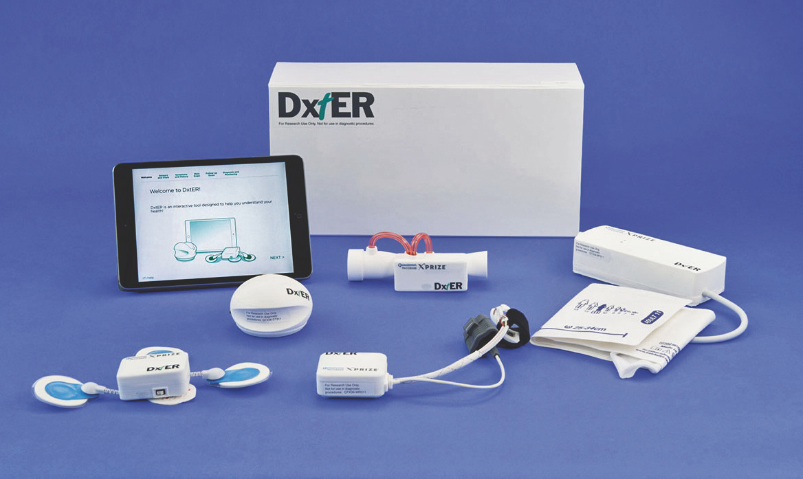 In die Schlussrunde kamen sieben Finalisten (siehe TR 1/2016, S. 43). Ausschlaggebend für den Gesamtsieg war dann die diagnostische Genauigkeit. Hier lag DxtER (gesprochen „Dexter“) des US-Start-ups Final Frontier Medical Devices vorn. Gegründet hatte es der Notarzt Basil Harris mit seinen Brüdern. Ihm war bei seiner Arbeit aufgefallen, dass viele Menschen wegen Bagatellen in die Notaufnahme kamen, weil sie keinen Zugang zu Hausärzten hatten. Zudem störte es ihn, wie mühselig es war, die Daten dieser Patienten zu erheben. Anfangs haben die Brüder nach Feierabend an dem Tricorder gebastelt. Mittlerweile ist ihr Team auf sieben Spezialisten angewachsen.