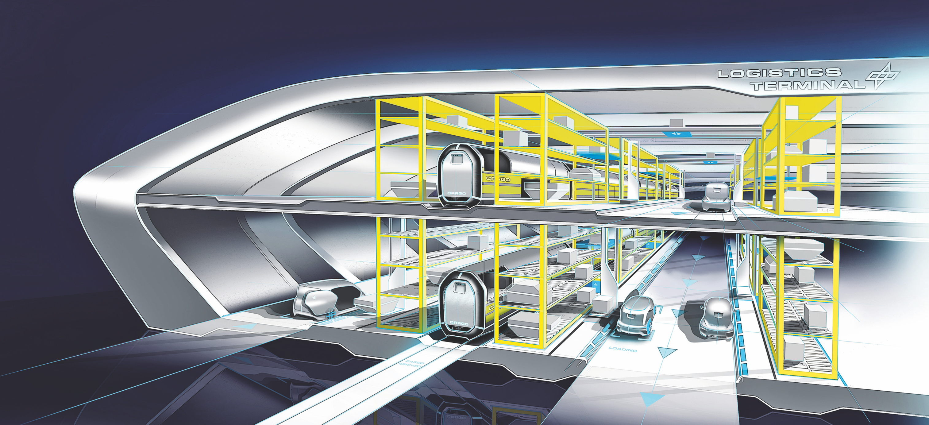 Stromlinienförmig, bis zu 400 Kilometer pro Stunde schnell und mit selbstfahrenden und kuppelnden Einzelwagen, so stellen sich Forscher des Deutschen Zentrums für Luft- und Raumfahrt (DLR) in ihrer Studie Next Generation Train (NGT) Cargo den Güterzug der Zukunft vor. Die Waggons verfügen über einen eigenen elektrischen Antrieb samt Batterien, die beim Bremsen geladen werden. So können sie völlig autonom in Häfen, Umschlagsbahnhöfe oder Logistikterminals (Bild oben) hineinfahren und dort automatisch be- und entladen werden.