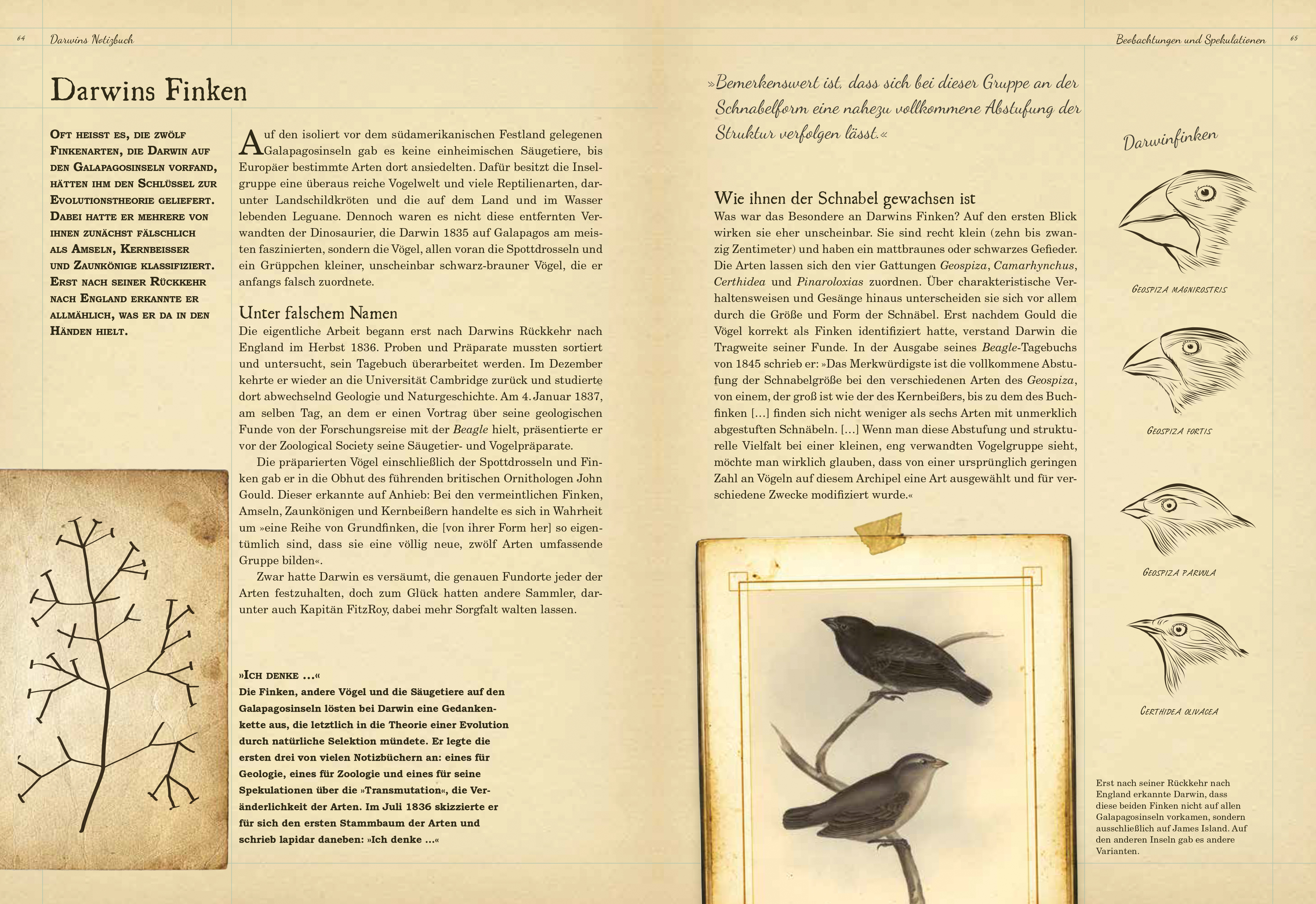 Darwins echte Notizbücher waren klein, rot und nach den Buchstaben des Alphabets sortiert. Zwei der wichtigsten Bände, die unter anderem die ersten Skizzen zum „Baum des Lebens“ enthalten, wurden 2001 gestohlen.
